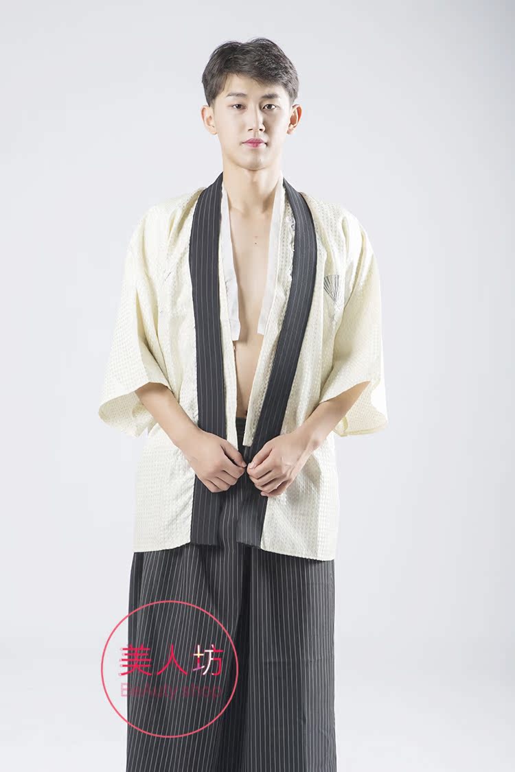 Kimono Nam Phong Cách Samurai - Áo Kem Váy Sọc