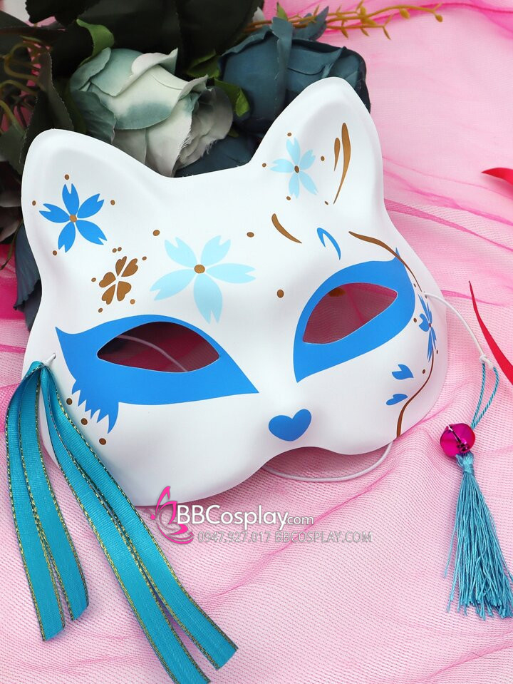 Mặt Nạ Hồ Ly Tone Xanh Dương Hoa Đào