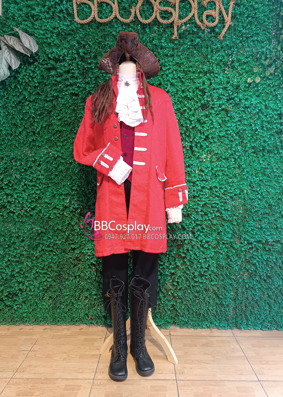 Trang phục thuyền trưởng Hook được lấy cảm hứng từ bộ phim Peter Pan, Trang phục đi kèm nhiều phụ kiện như nón, bịt mắt, giày,... giúp bạn hóa trang vào nhân vật mình yêu thích một cách hoàn hảo. Chất liệu của trang phục bao gồm kate, nhung, vải ren với đường may chắc chắn, dáng đồ phù hợp với nhiều dáng người, giúp bạn thoải mái vận động.
