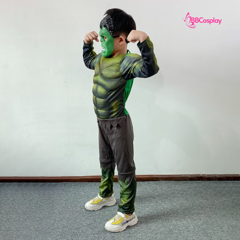 Tại BBCOSPLAY, chúng tôi mang đến cho bé yêu những bộ trang phục siêu anh hùng Hulk mạnh mẽ, giúp bé hóa thân thành người khổng lồ xanh mà mình ngưỡng mộ. Với chất liệu thoáng mát , an toàn cho da và thiết kế sống động như thật, từ cơ bắp cuồn cuộn đến những đường nét chi tiết, bé sẽ tự tin sải bước, vui chơi thỏa thích.