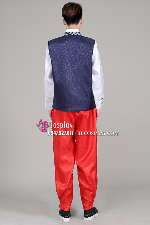 Hanbok Cho Nam Hàn Quốc Gấm Xanh Quần Đỏ