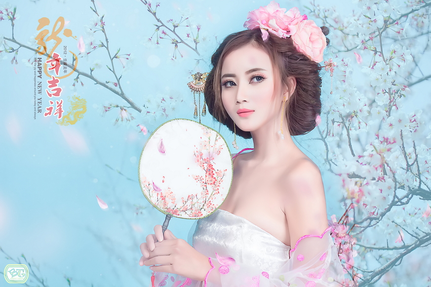 yếm gấm trắng + váy trắng + áo choàng voan thêu hoa