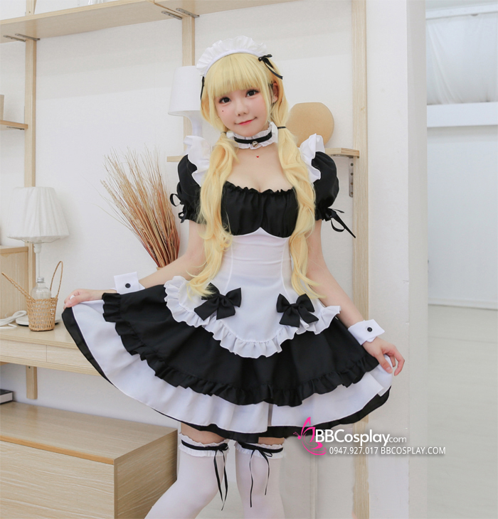 Trang Phục Nàng Hầu Nhật Đen Tạp Dề Trắng Cổ Áo Lá Sen
