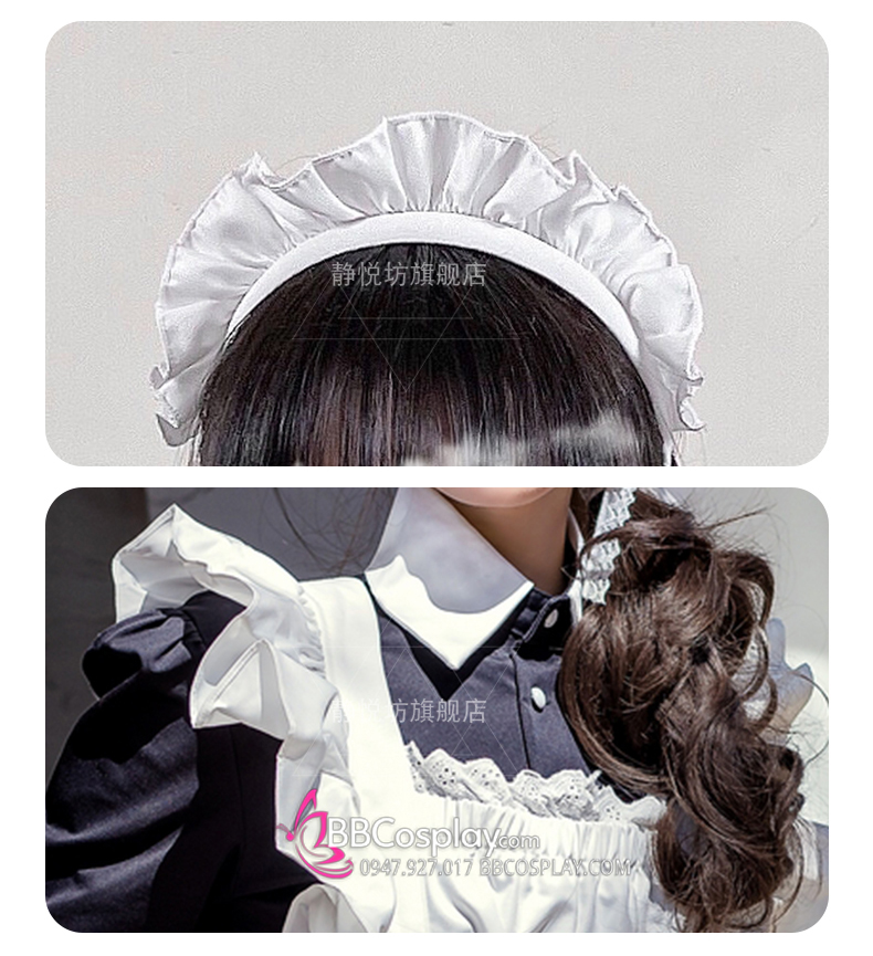 Trang Phục Nàng Hầu Nhật Đen Tạp Dề Trắng Cổ Áo Lá Sen