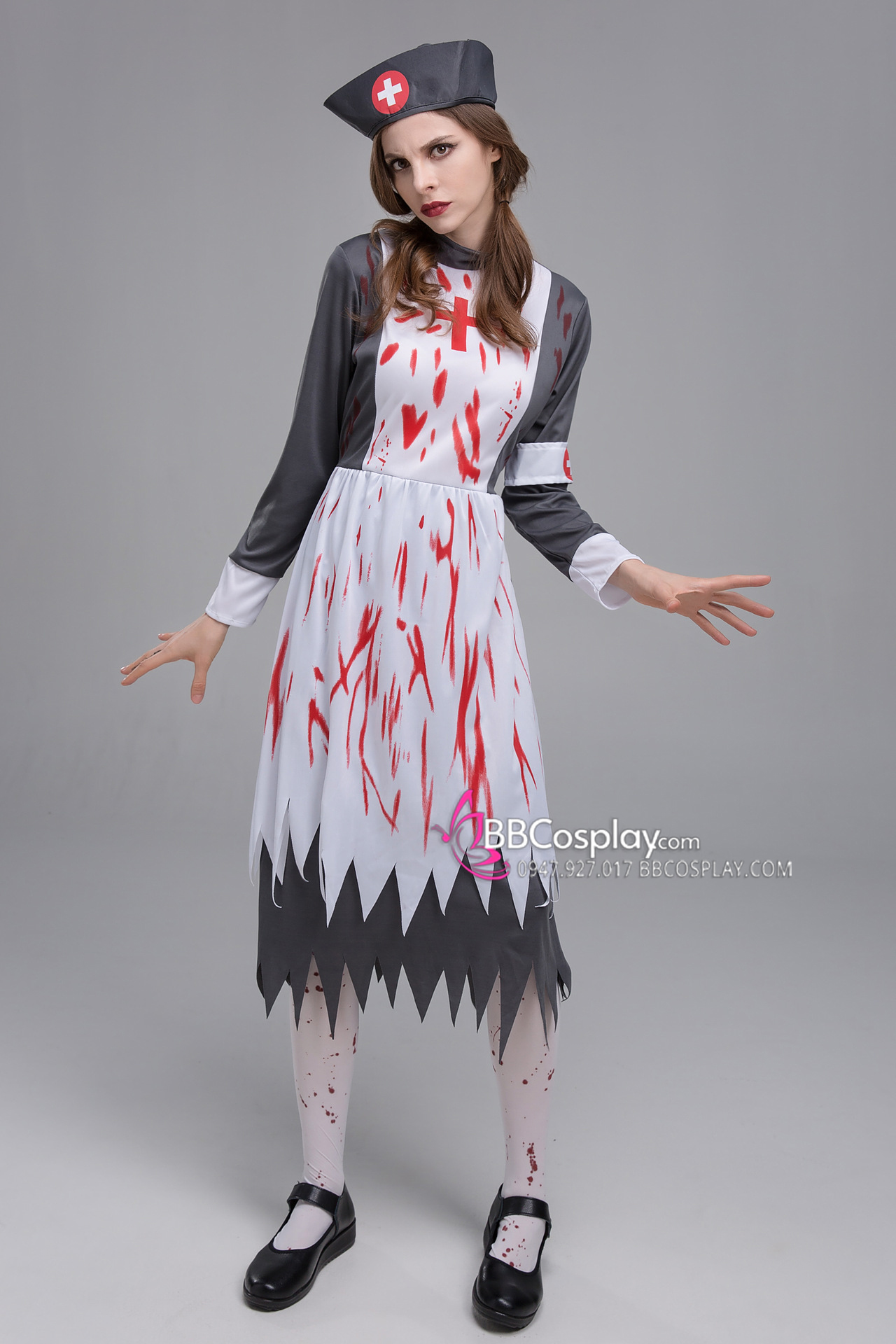 Trang Phục Y Tá Đầm Xám Dáng Dài Dính Máu Rách Te Tua