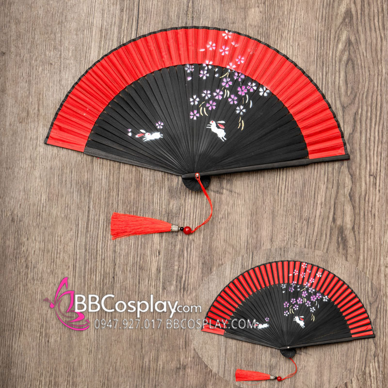 Quạt Xếp Uchiwa Vải Đỏ Cán Đen Loại Cao Cấp