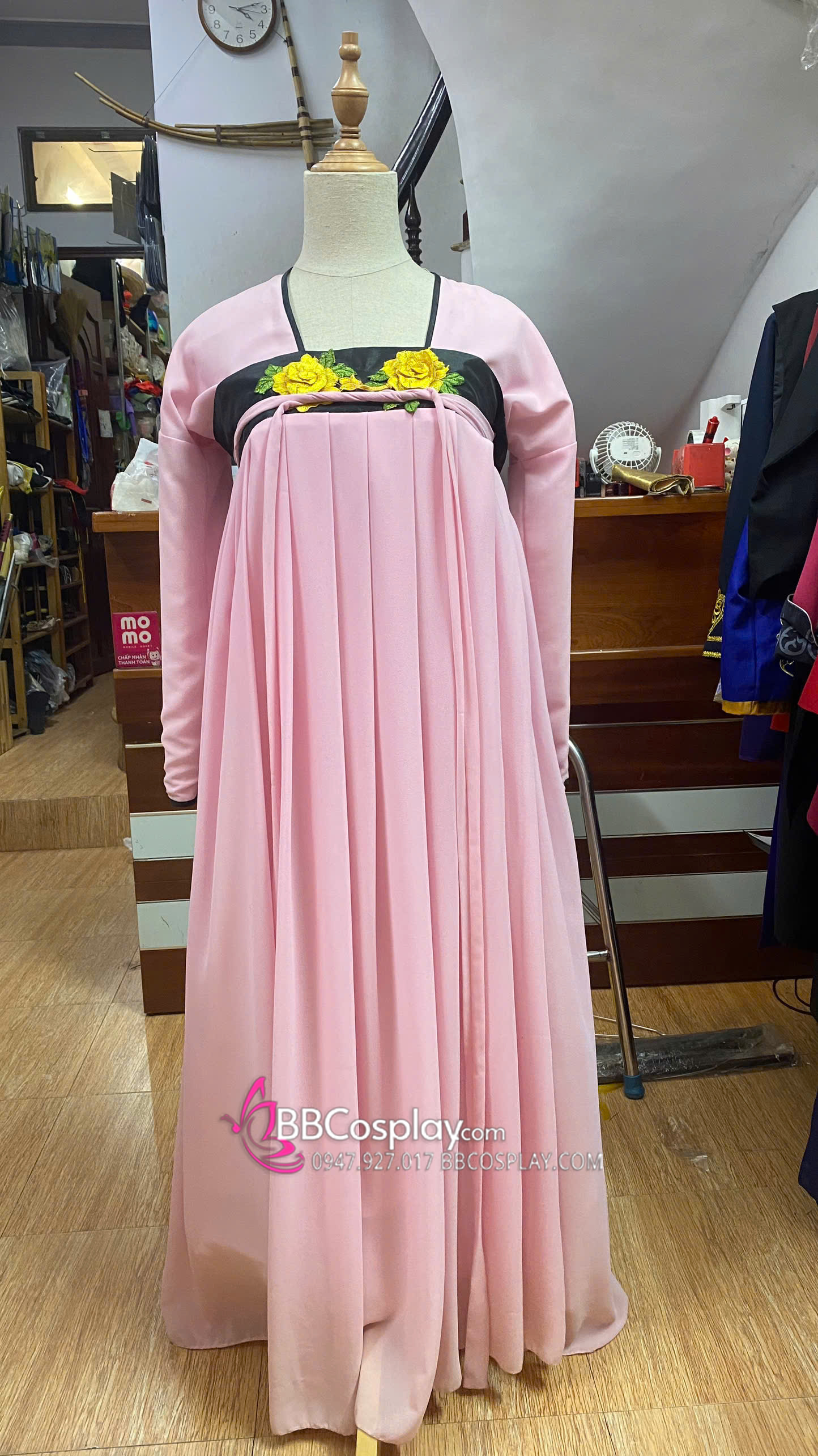 Trang Phục Hằng Nga Chiết Ngực Giá Rẻ - Màu Hồng Viền Đen