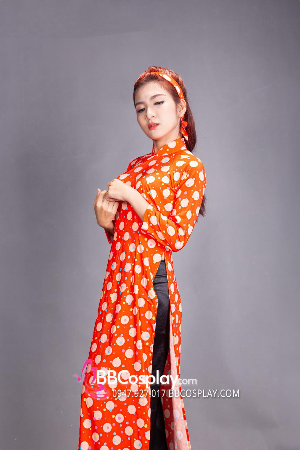 Áo Dài Cô Ba Sài Gòn Cam Chấm Bi