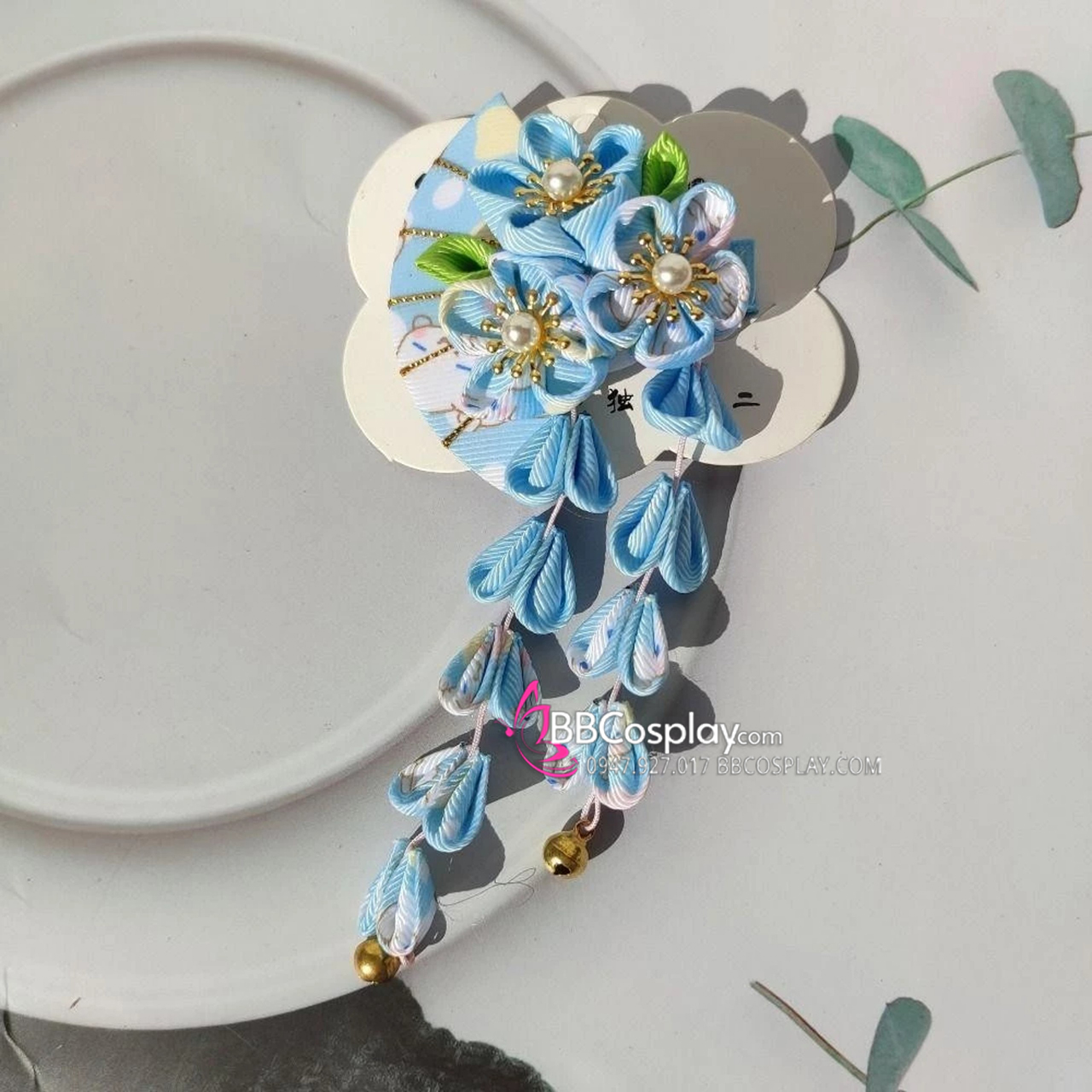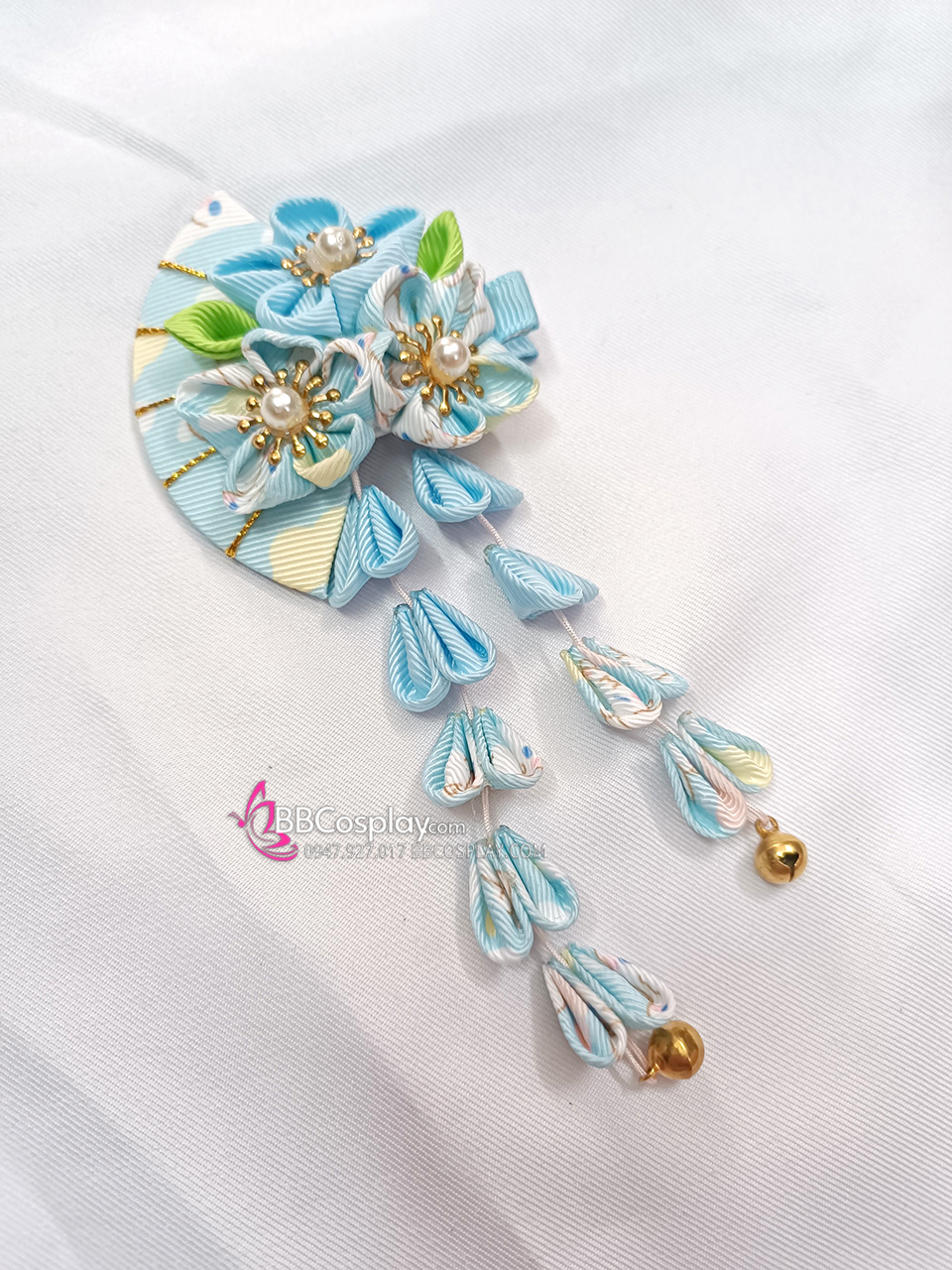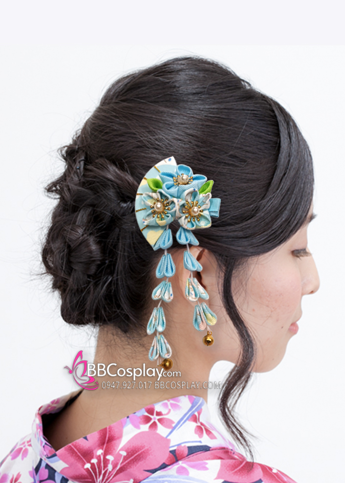 Kanzashi Phụ Kiện Cài Nhật Bản Nhiều Màu - Xanh Dương Hoa Rẻ Quạt