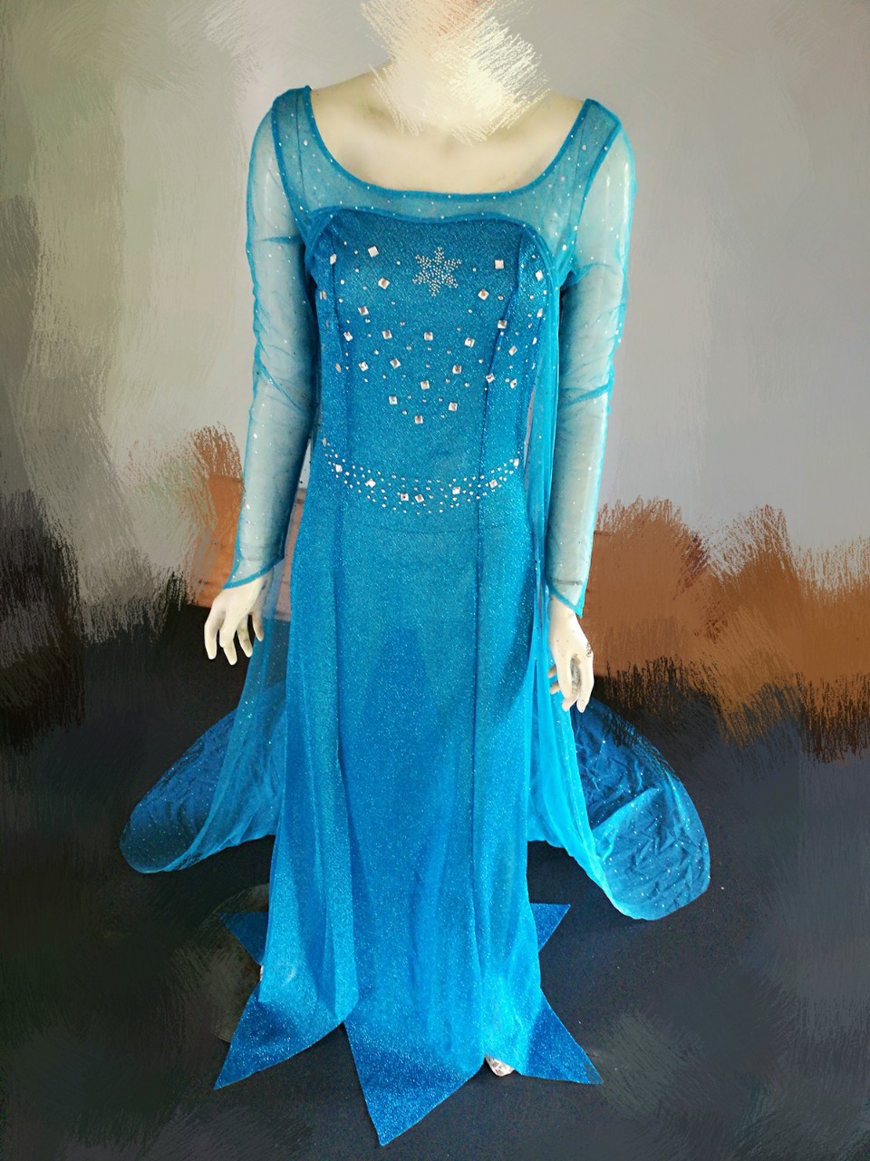 Trang phục được shop được làm mô phỏng giống với nguyên tác với phần thân váy và chân váy được may từ vải kim sa rực rỡ, phần tay áo được cắt may tỉ mỉ. Đặc biệt Trang Phục Elsa còn có áo choàng mang họa tiết bông tuyết in nổi. Trang phục rất phù hợp để dùng cho chụp ảnh, hóa trang, dự tiệc và đặc biệt phù hợp để diện vào Giáng Sinh. Đồ hóa trang Elsa của shop còn có nhiều size phù hợp với số đo của khách hàng.