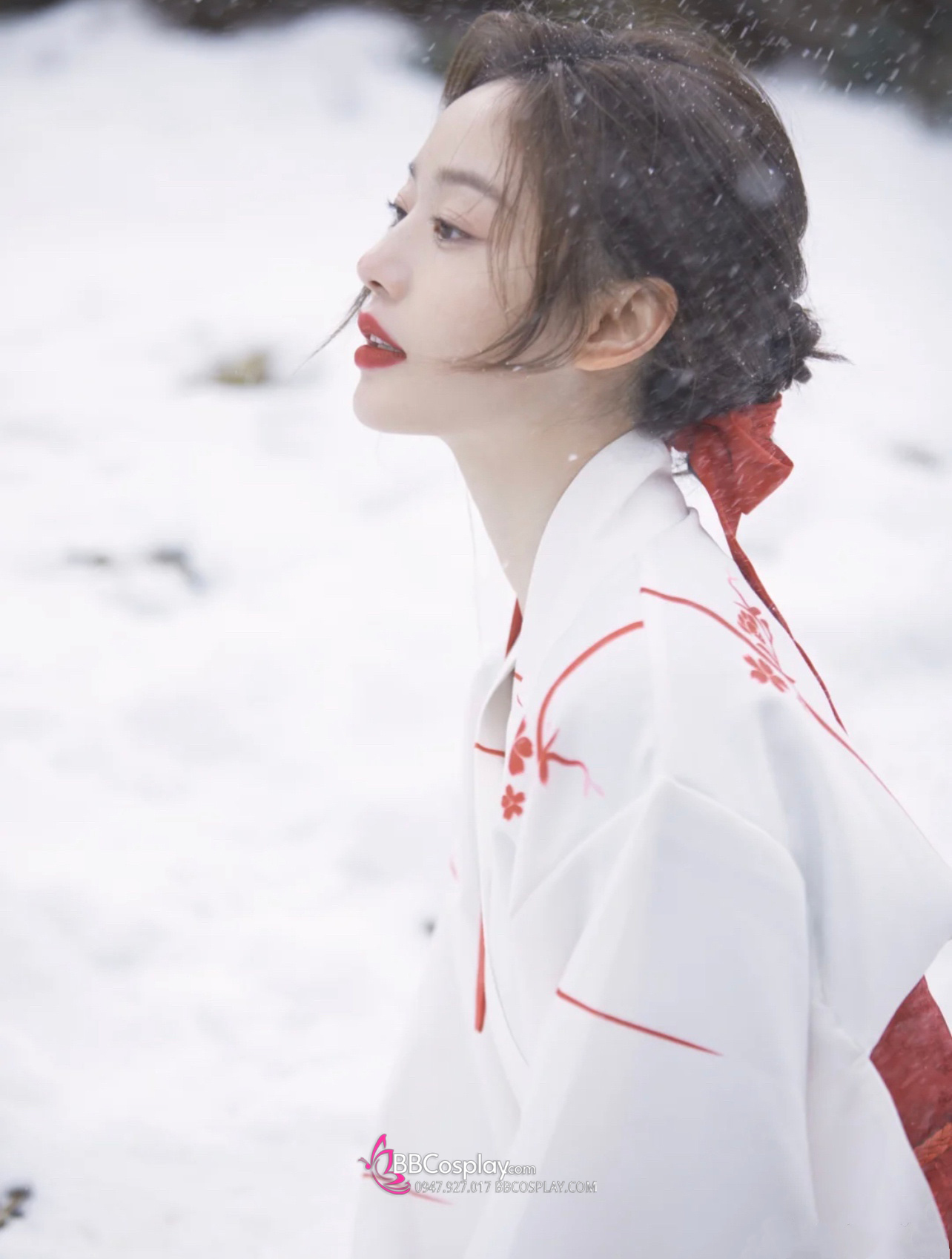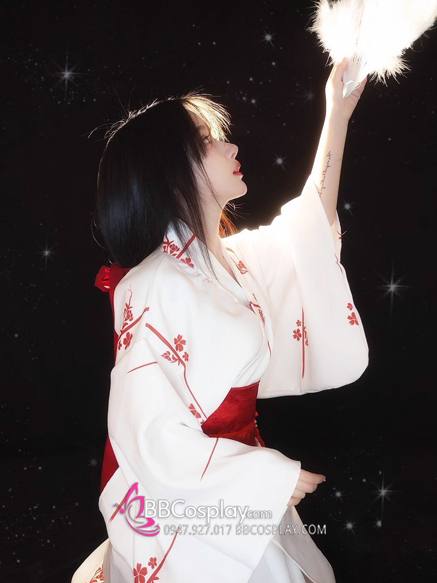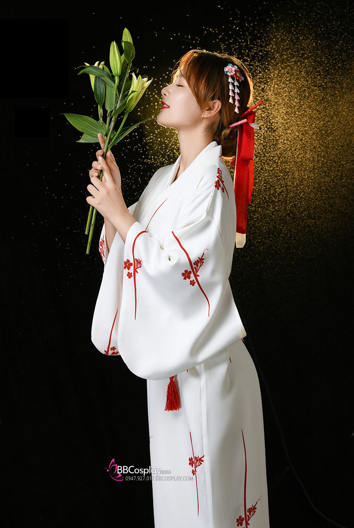 Áo Yukata Shiro Aka Nền Trắng Phối Đỏ Tặng Kèm Thắt Lưng