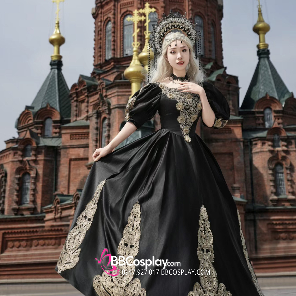 Lấy cảm hứng từ phim điện ảnh về giới hoàng gia Châu Âu thế kỉ 18, trang phục nữ hoàng tại BBCosplay là một bản mô phỏng hoàn hảo của trang phục hoàng gia. Trang phục thể hiện sự kiêu sa, sang trọng và thanh lịch của giới quý tộc với phần thân váy được làm xòe và xếp ly một cách khéo léo và tỉ mỉ. Phần tay áo được cắt may kĩ lưỡng và phối ren hài hòa. Ngoài ra còn có nón bá tước đi kèm giúp tôn thêm vẻ hoành tráng của bộ trang phục.