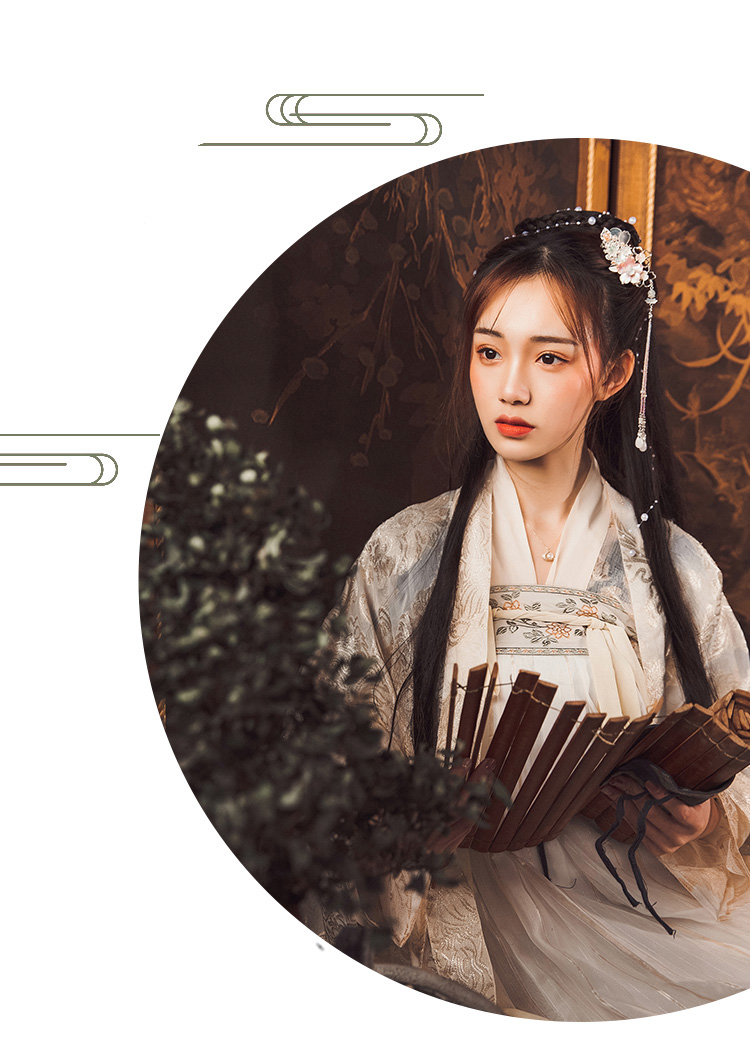 Hán phục Hoàng Vinh Cơ sẽ đem lại sự thoải mái cho người mặc vì chất voan, lụa rất thoáng khí và mềm mại. Trang phục bao gồm áo, váy và dây; có nhiều size, phần dây lưng còn có thể tăng giảm tùy ý theo số đo của người mặc.