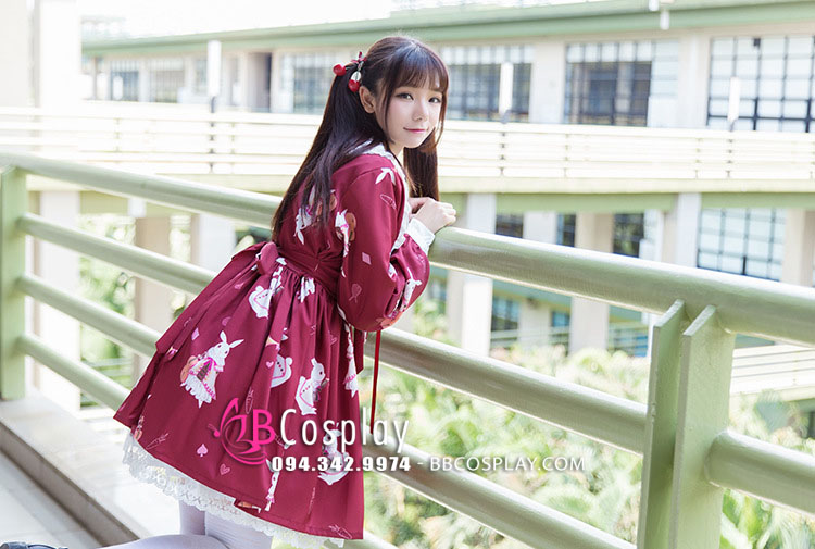 Đồ Nàng Hầu Maid Hồng Tạp Dề Trắng Kèm Nhiều Nơ