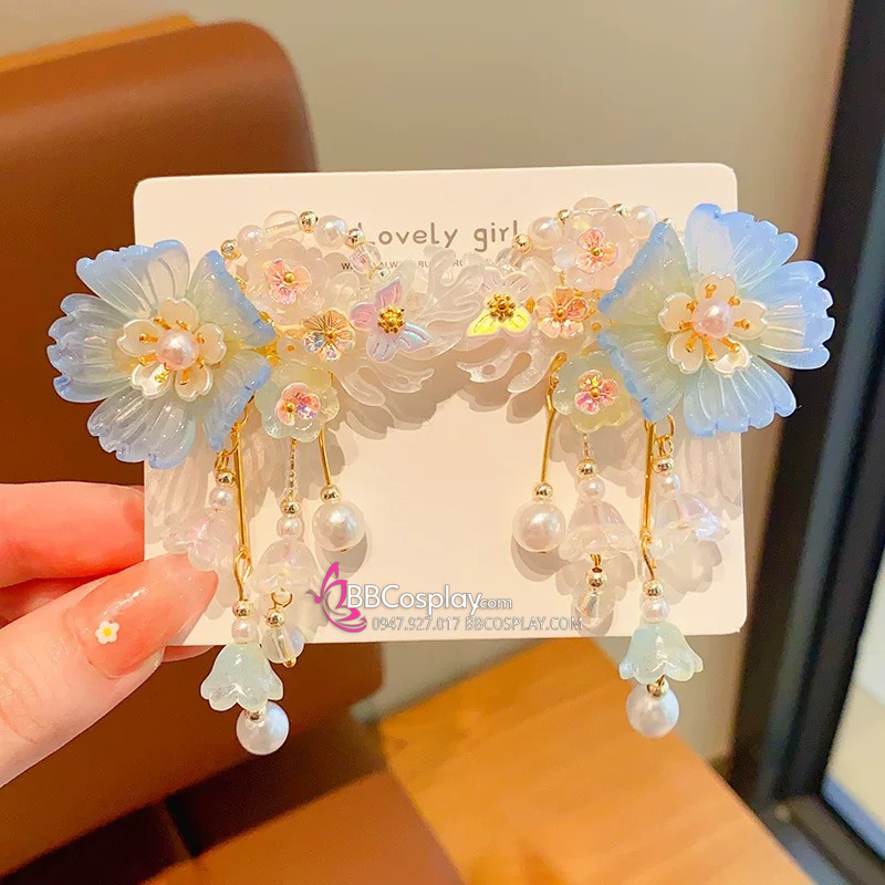 Cặp Kẹp Tóc Hoa Đá Xanh Dương Cẩm Xà Cừ