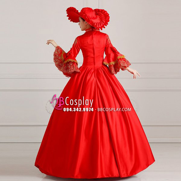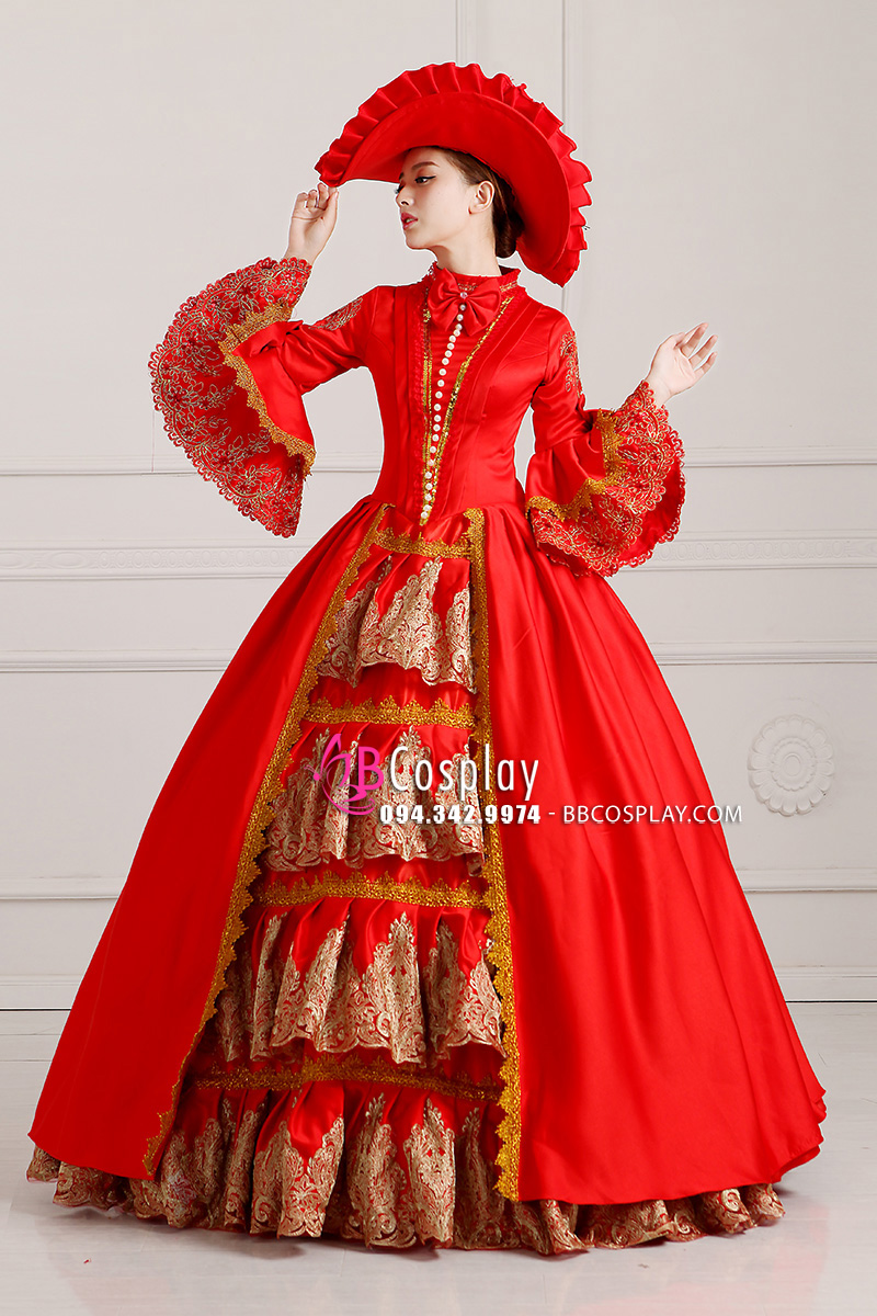 Trang Phục Nữ Bá Tước Đỏ Ren Vàng Đồng