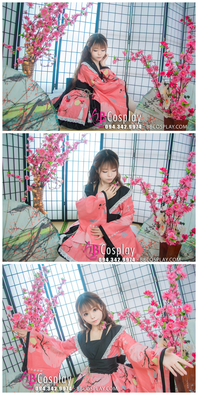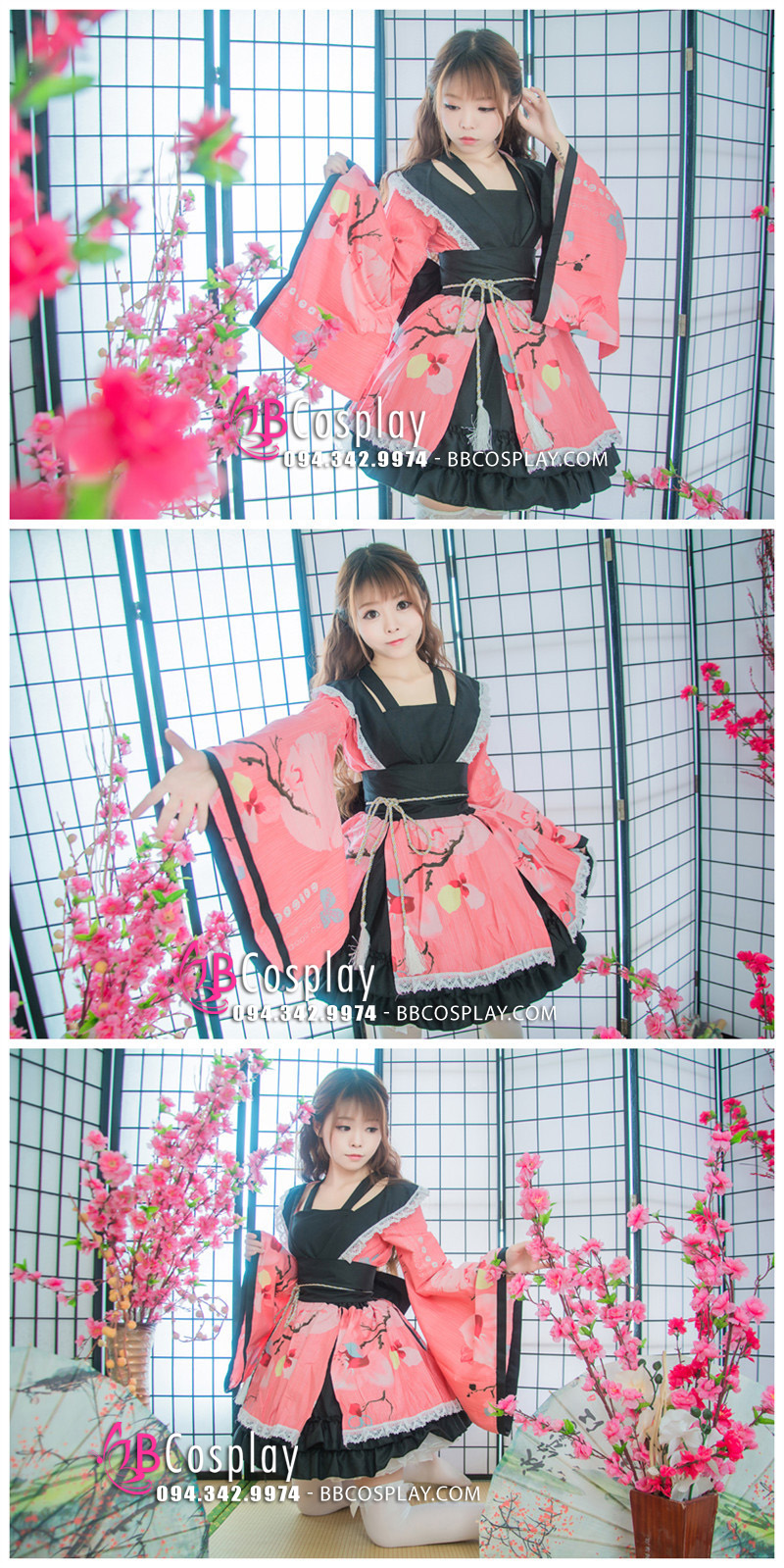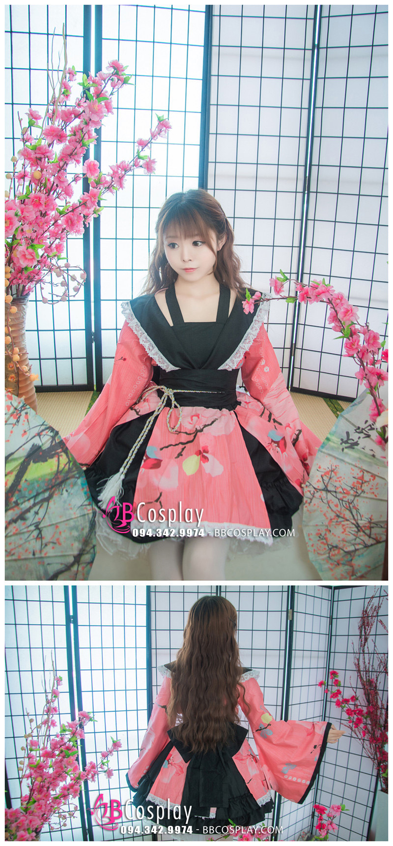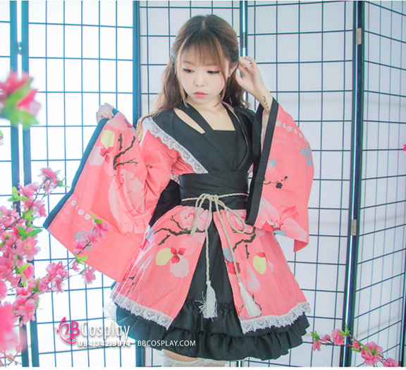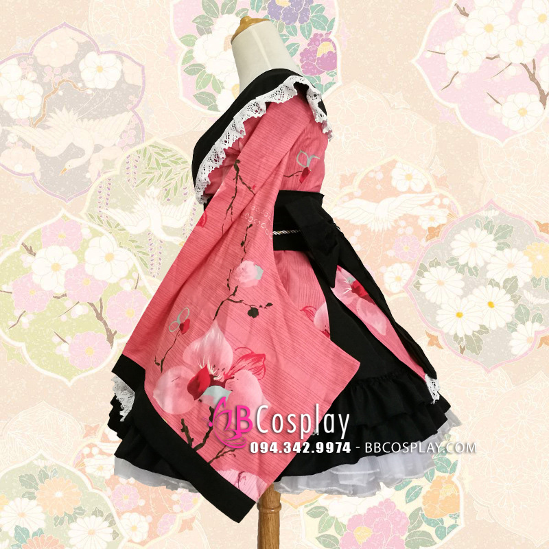 Trang Phục Nàng Hầu Nhật Đen Tạp Dề Trắng Cổ Áo Lá Sen
