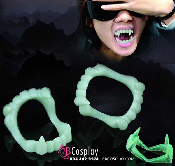 Răng giả ma cà rồng làm bằng nhựa, có thể phát sáng trong đêm. Bảo đảm bạn sẽ nổi bật trong mùa Halloween năm may với răng giả.