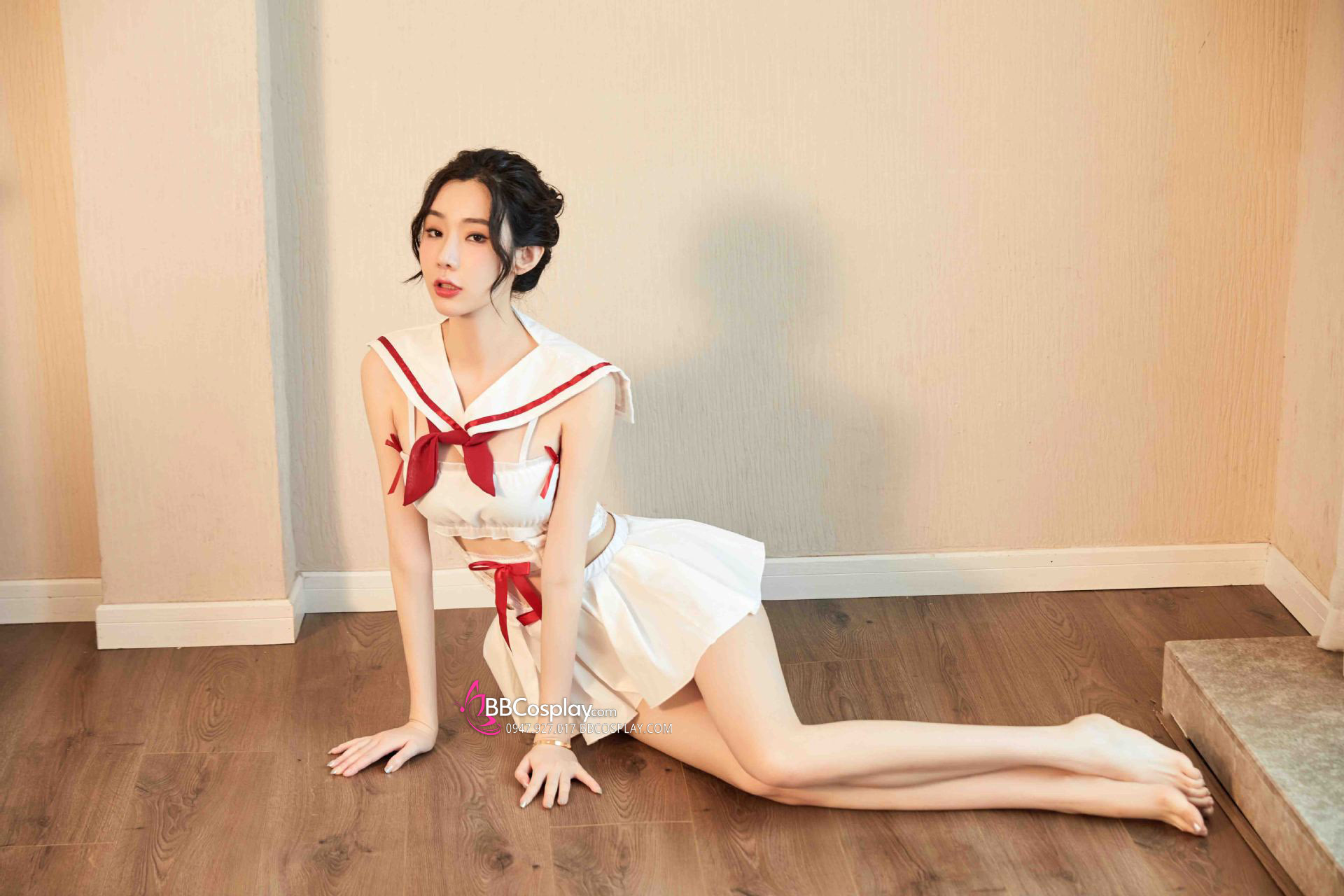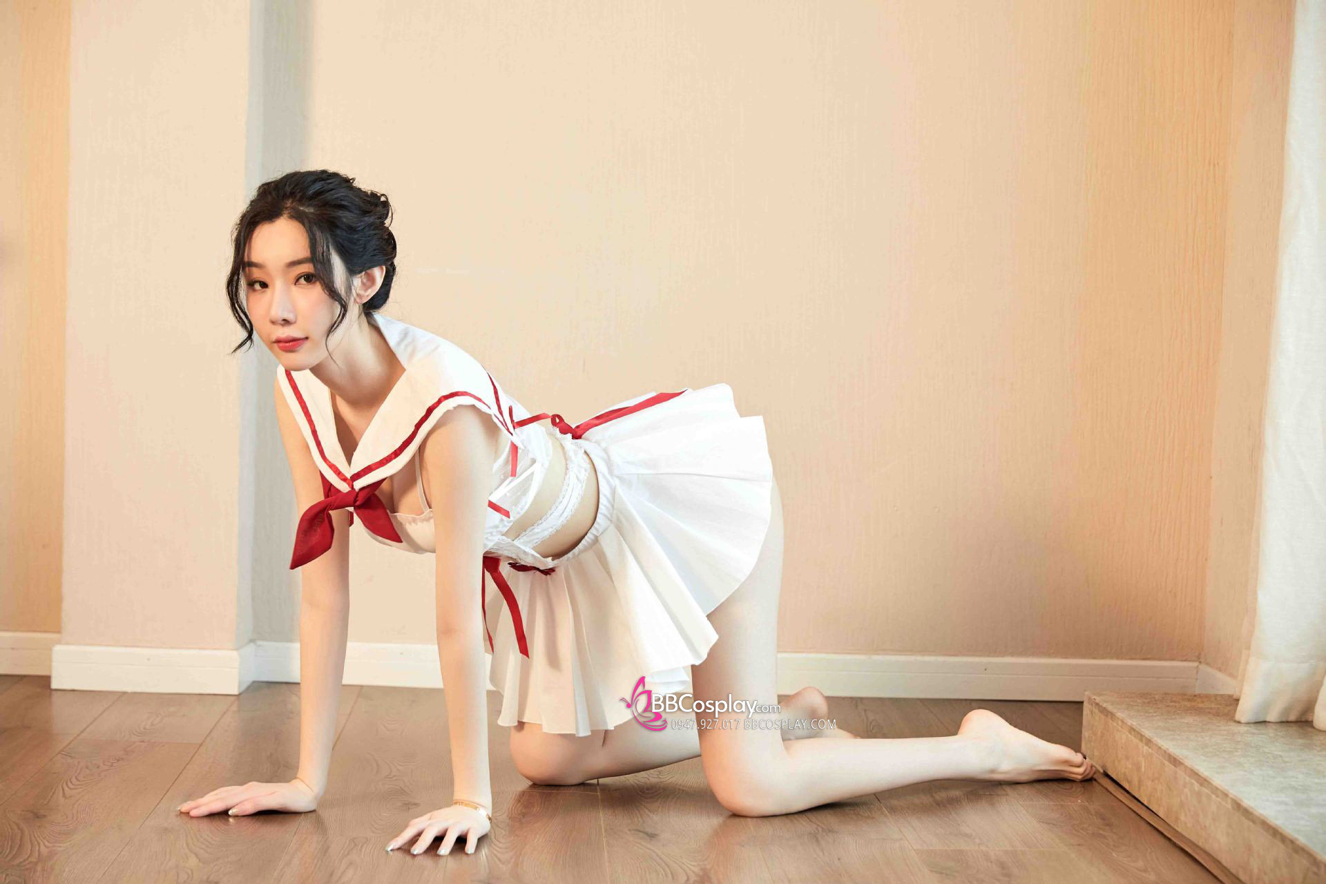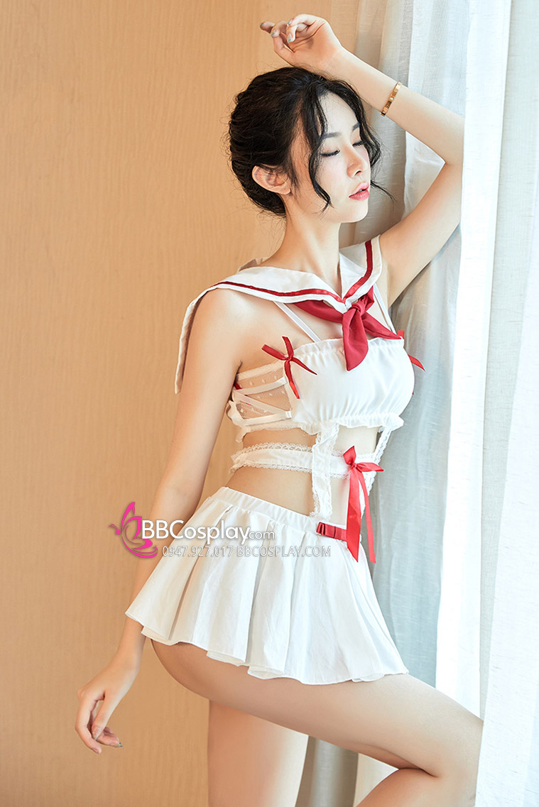 Đồ Nữ Sinh Sexy Trắng Phối Viền Đỏ