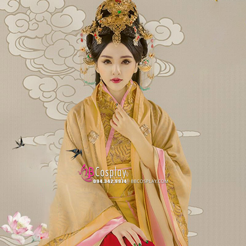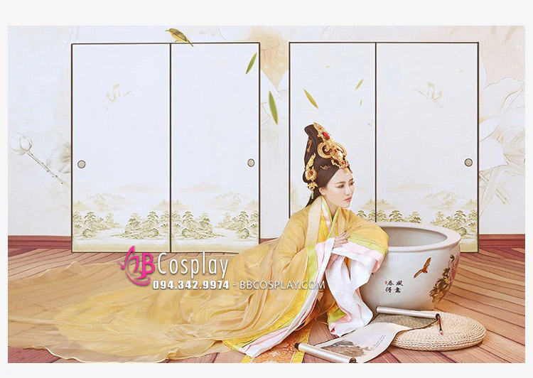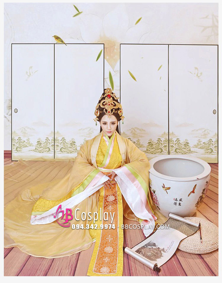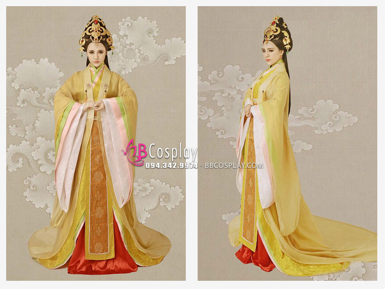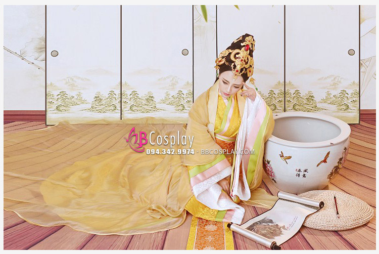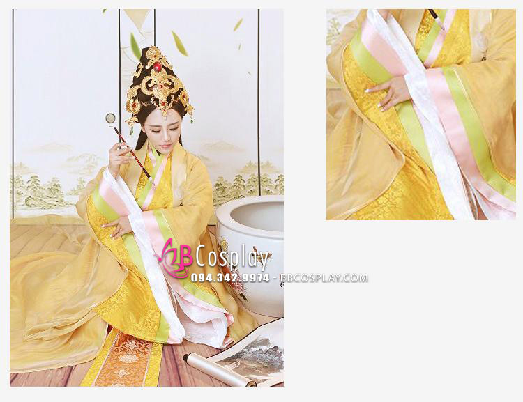 áo gấm dài + áo khoác tà dài thướt + đai gấm + váy