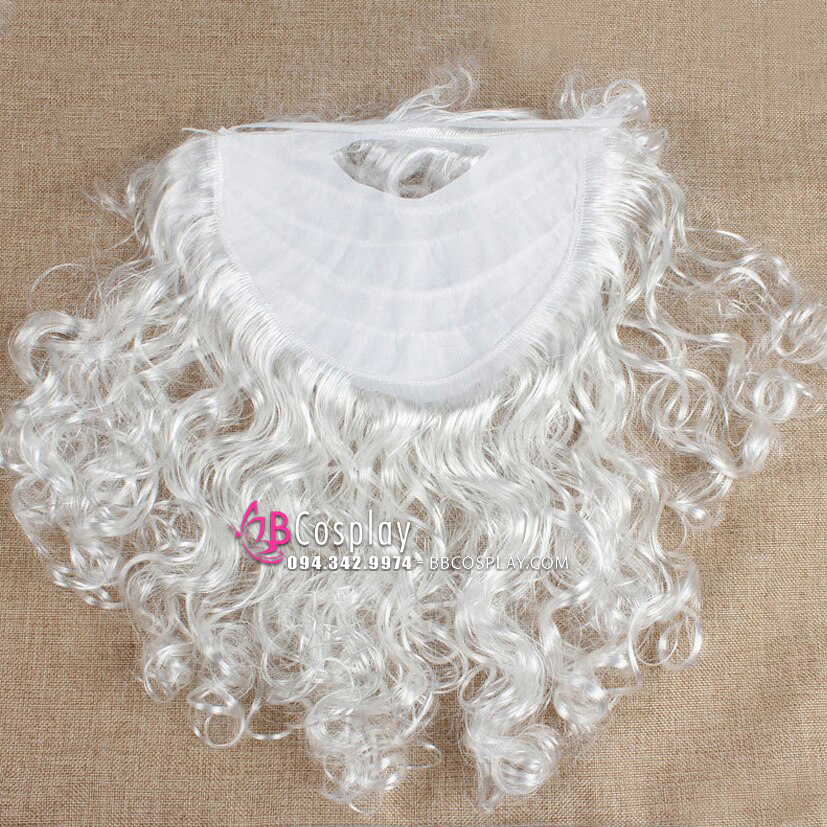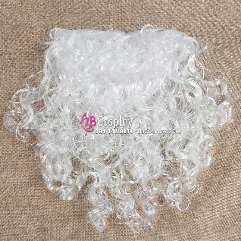 Đặc điểm của bộ râu ông già Noel là màu trắng, xoăn, dài qua ngực (có loại ngắn nữa nha). Chất liệu tơ nilông