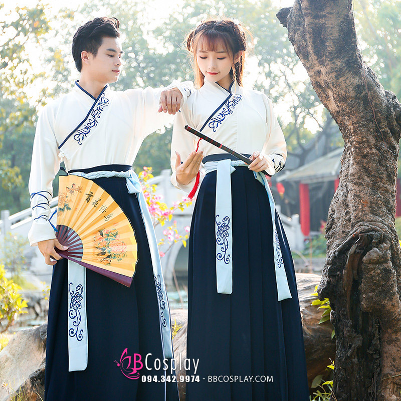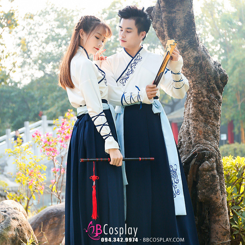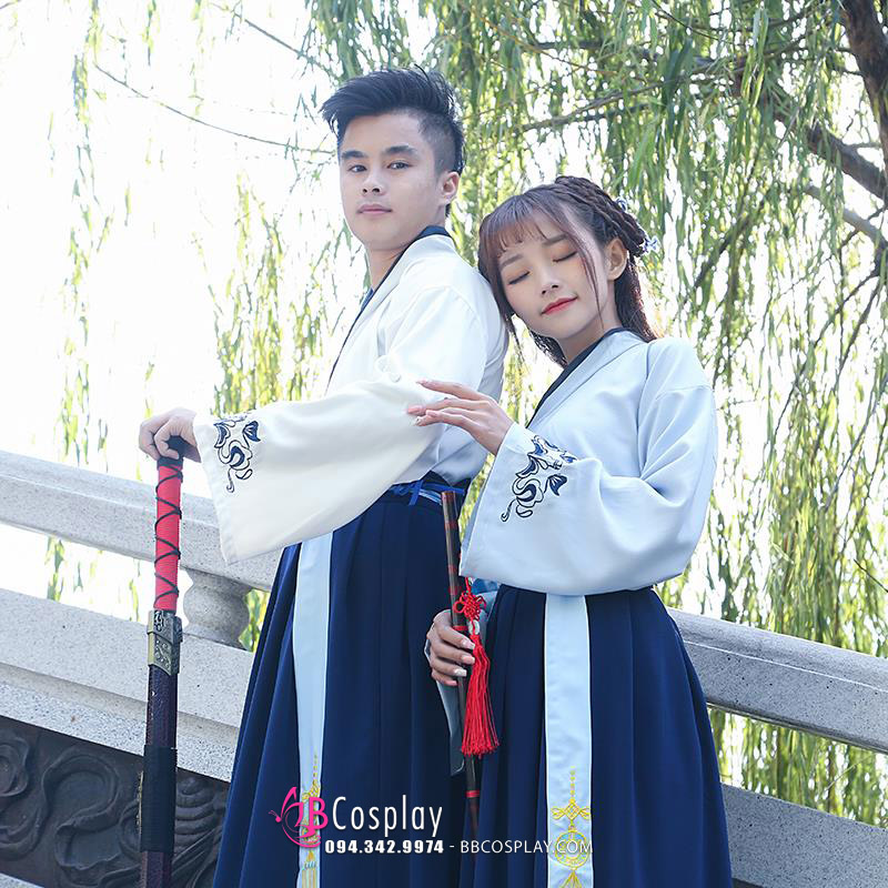 Cặp hán phục đôi nam nữ Áo Trắng Váy Xanh được may bằng vải kaki rũ cao cấp, thêu họa tiết trang nhã, tay áo nhỏ gọn dễ hoạt động, kiểu dáng trẻ trung hiện đại và đảm bảo 100% như hình. Hán phục cặp đôi có nhiều phụ kiện đi kèm như giày, quạt xếp, dù,... tạo điểm nhấn chắc chắn sẽ khiến các bạn nổi bật trong mọi bữa tiệc hay lễ hội cosplay.