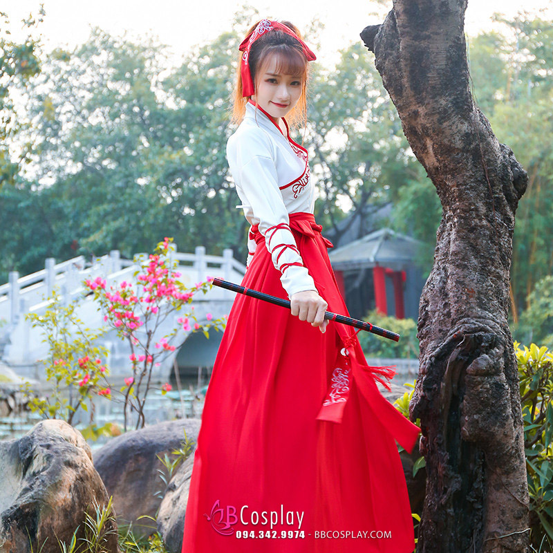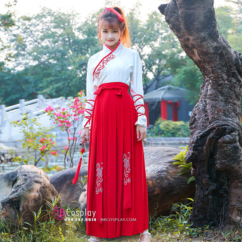 Hán Phục Môn Sinh Áo Trắng Váy Đỏ