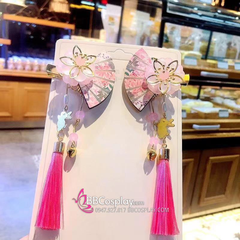 Cặp Kẹp Hoa Quạt Hồng