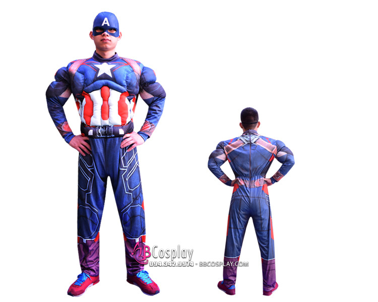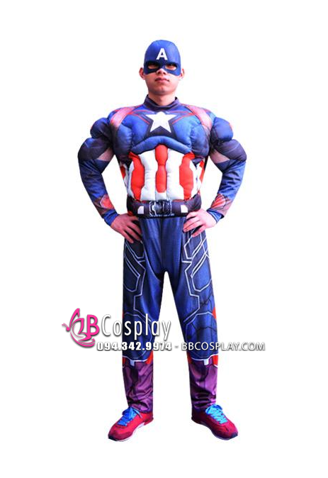 Bộ Đồ Captain America Độn Cơ Bắp In 3D