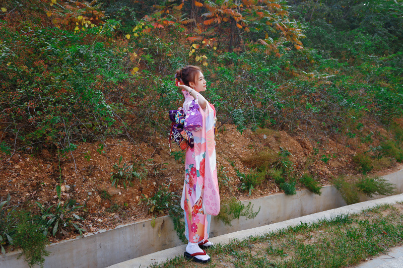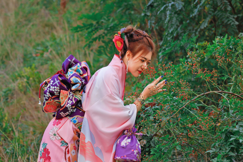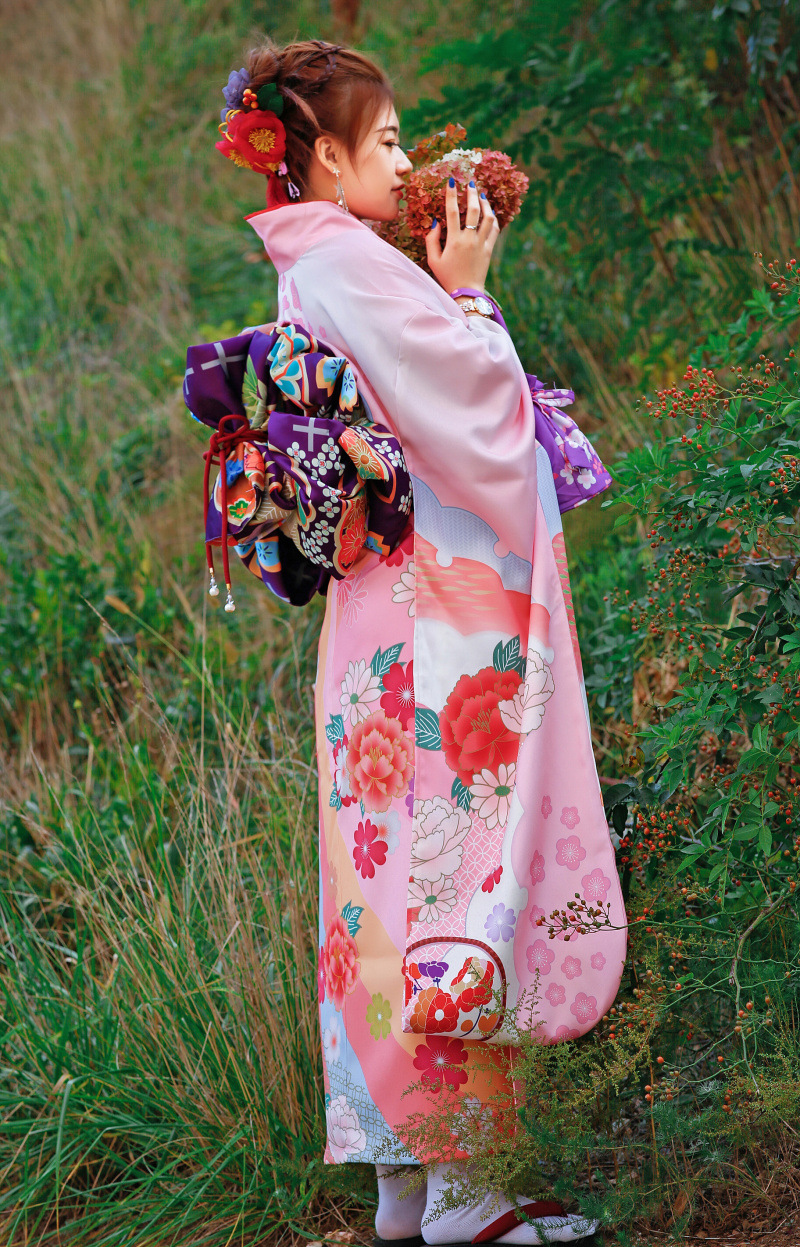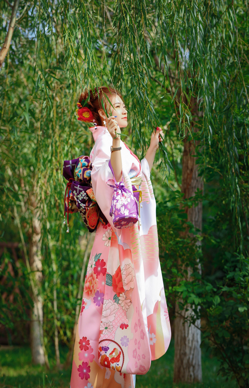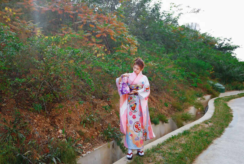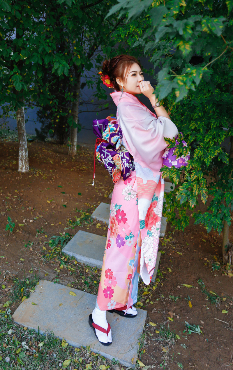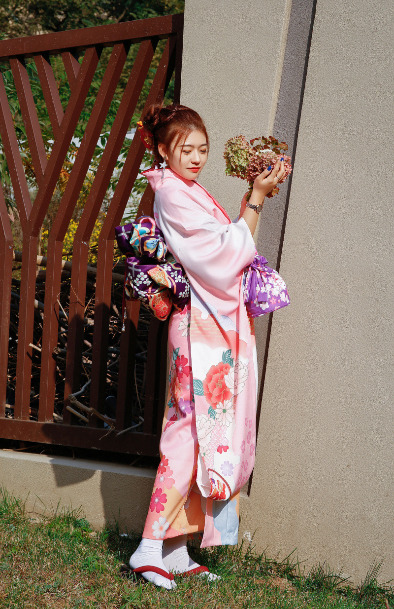 Kimono Truyền Thống Chuấn Nhật Màu Hồng