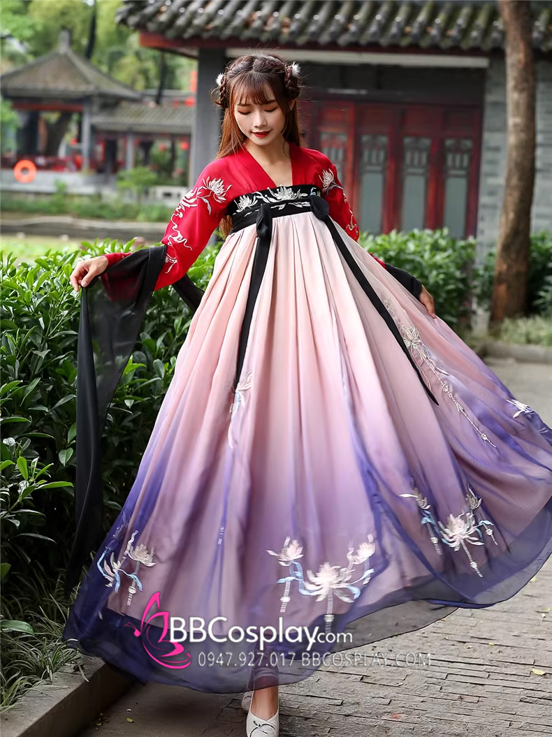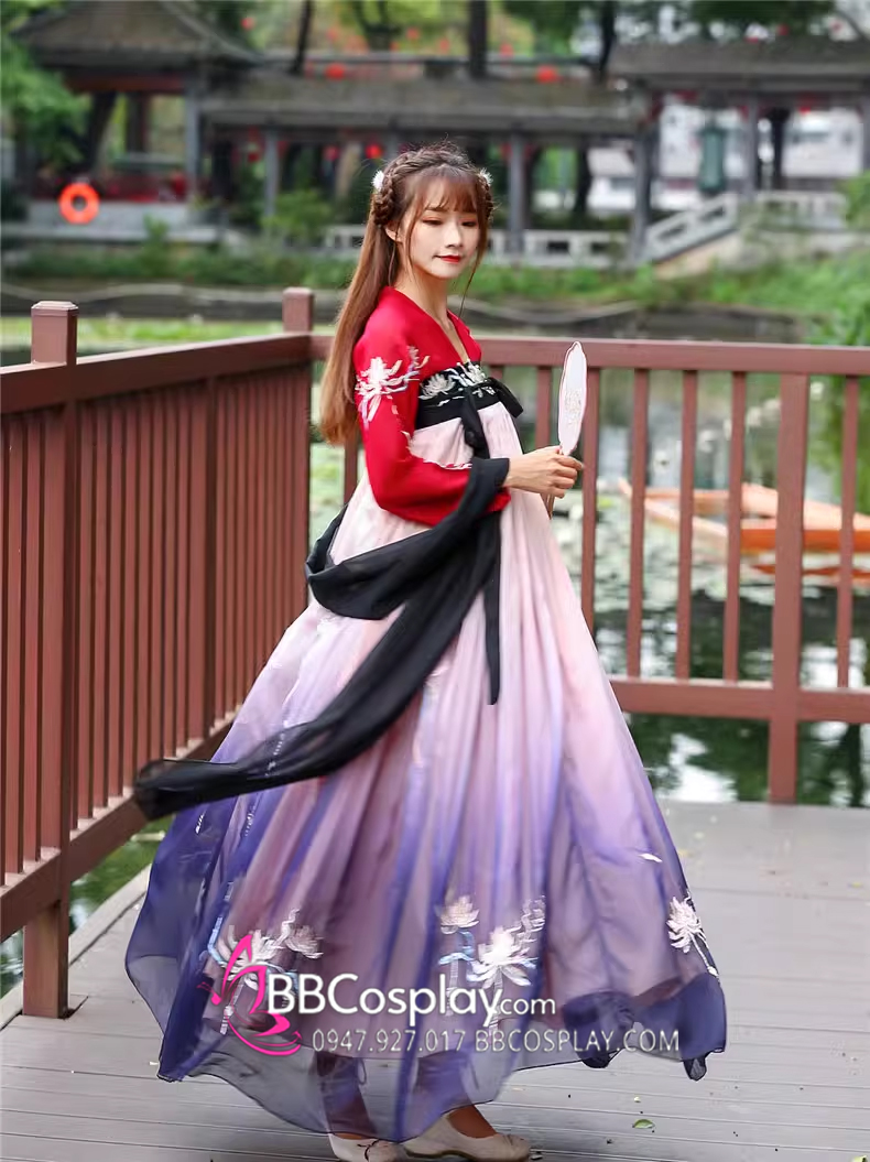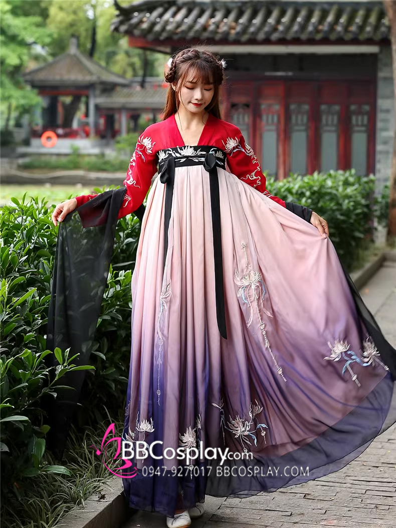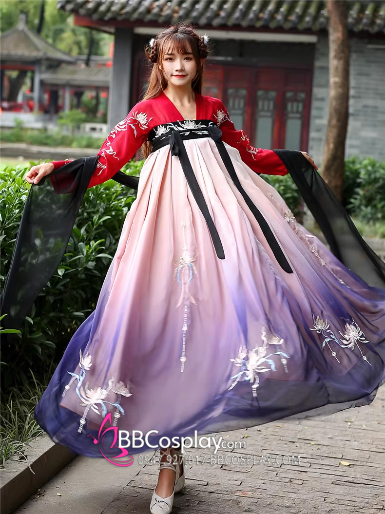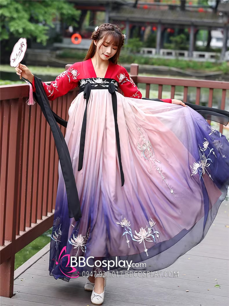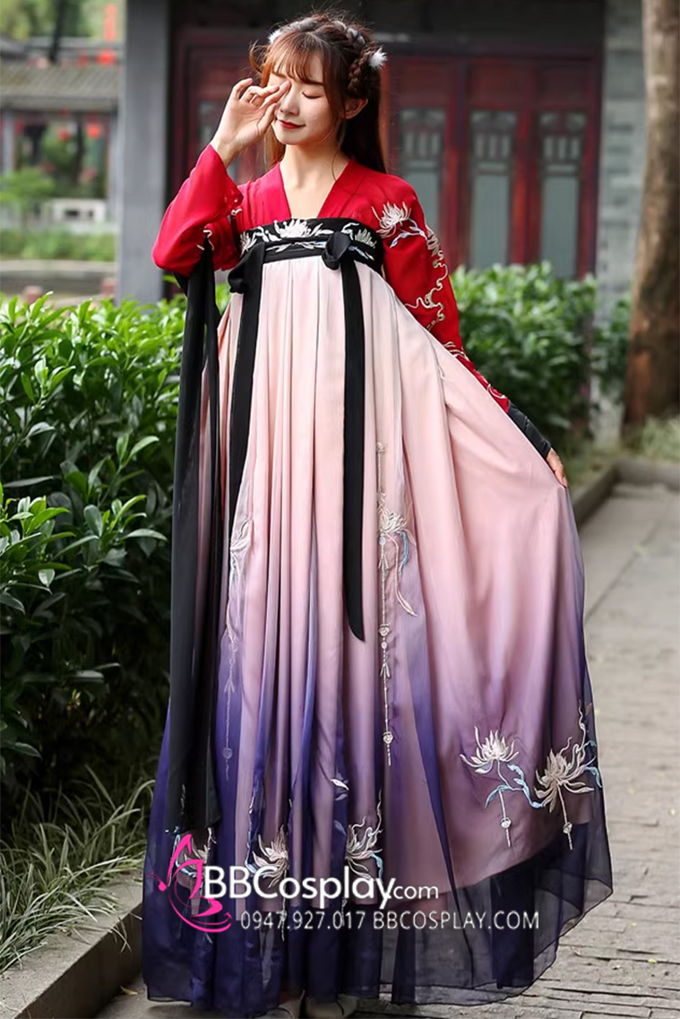 Hán Phục Tây Tửu Li Mị Chân Váy Chuyển Màu Thêu Hoa