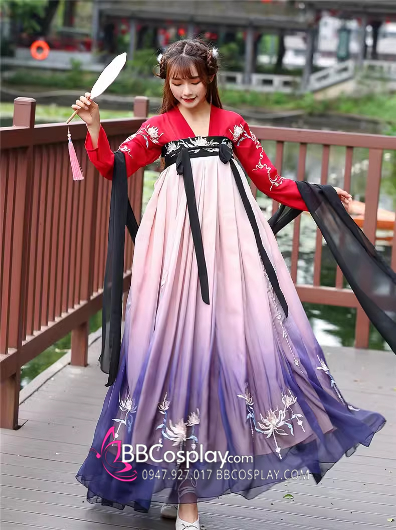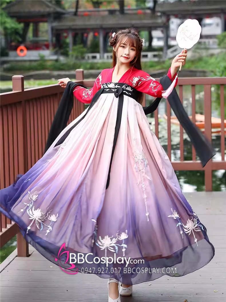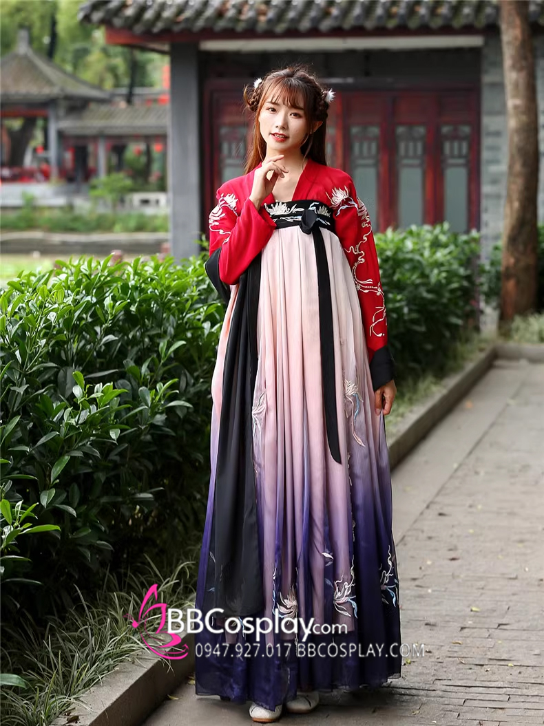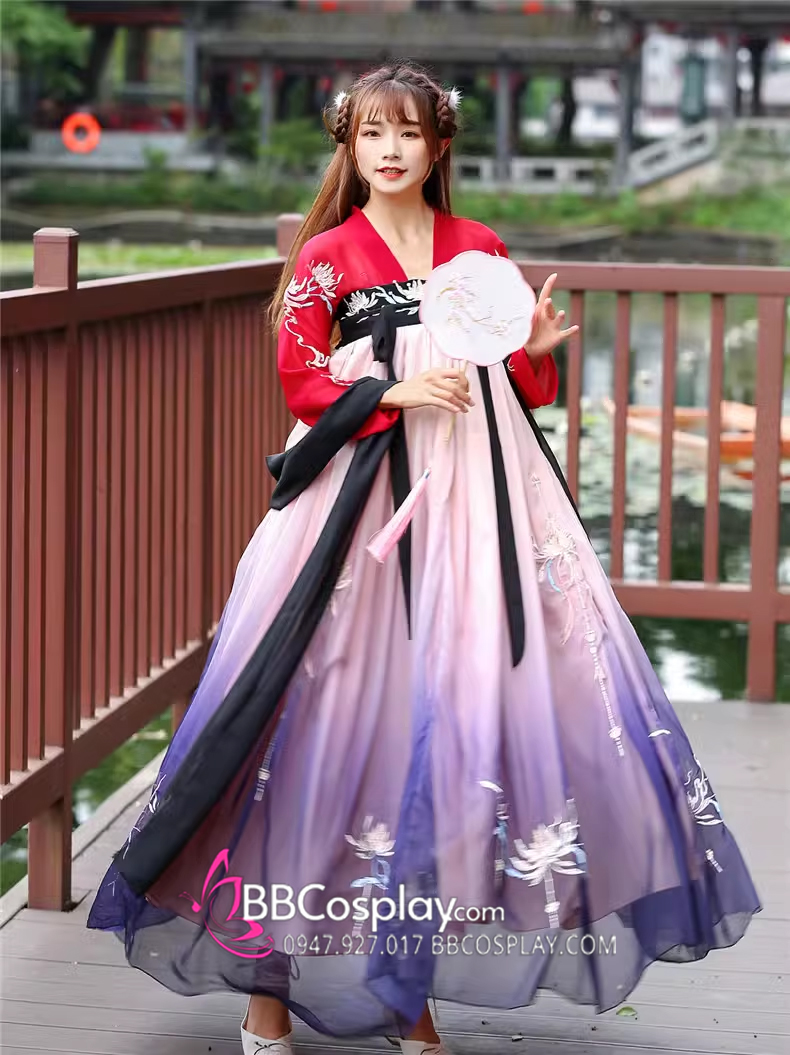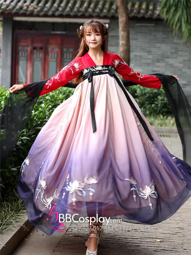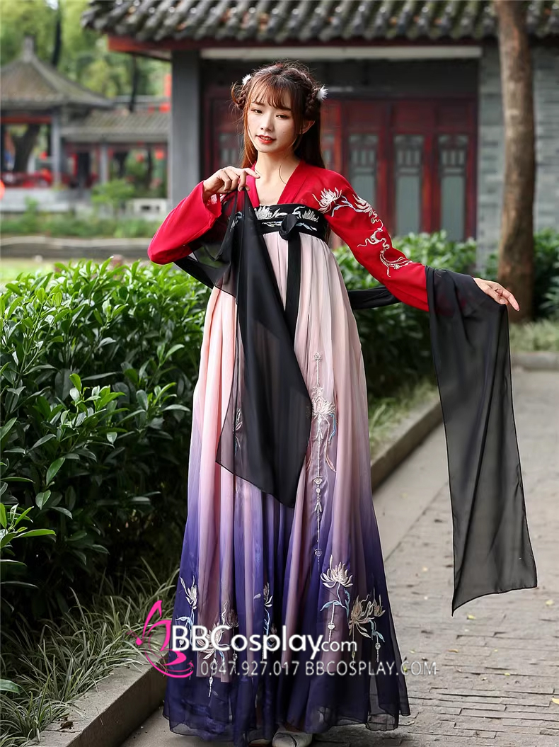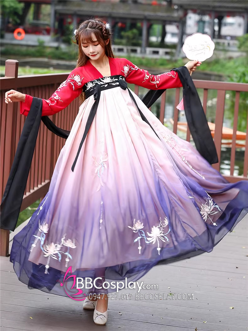 Hán Phục Tây Tửu Li Mị Chân Váy Chuyển Màu Thêu Hoa
