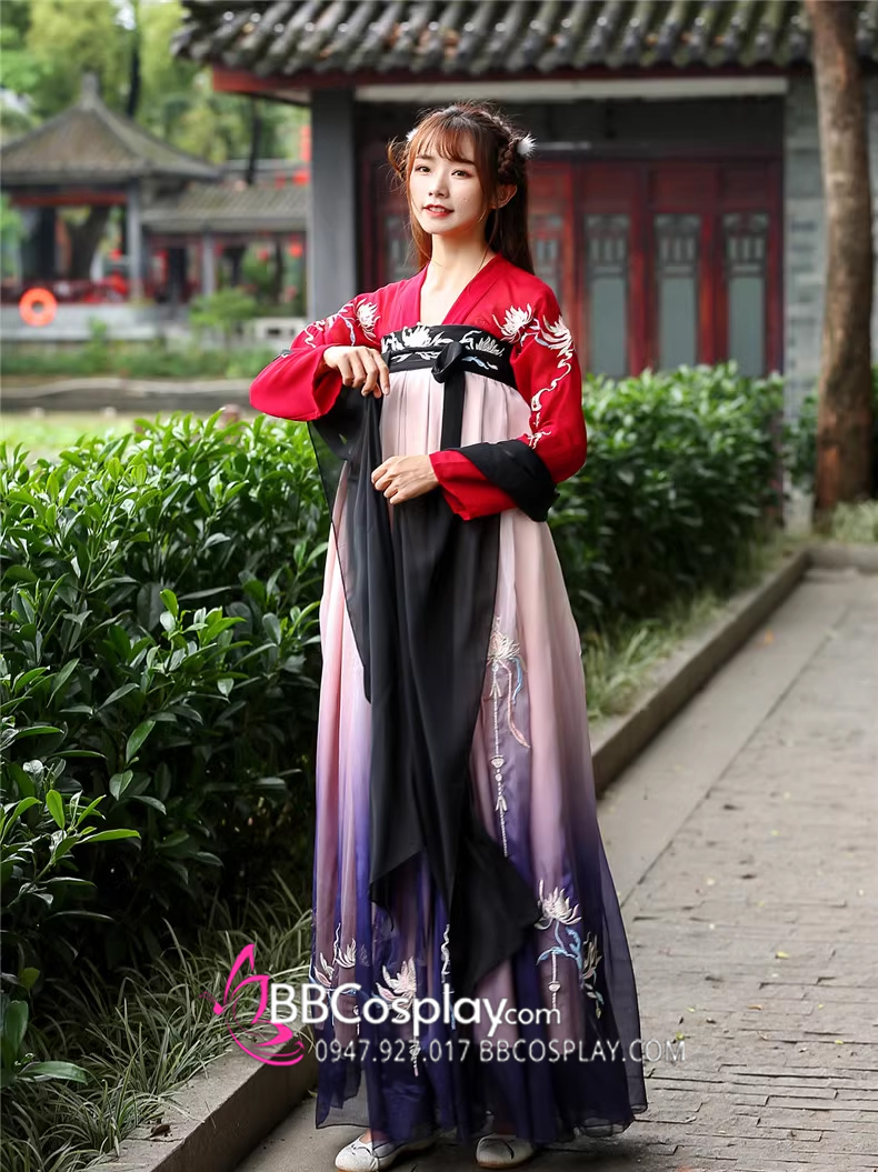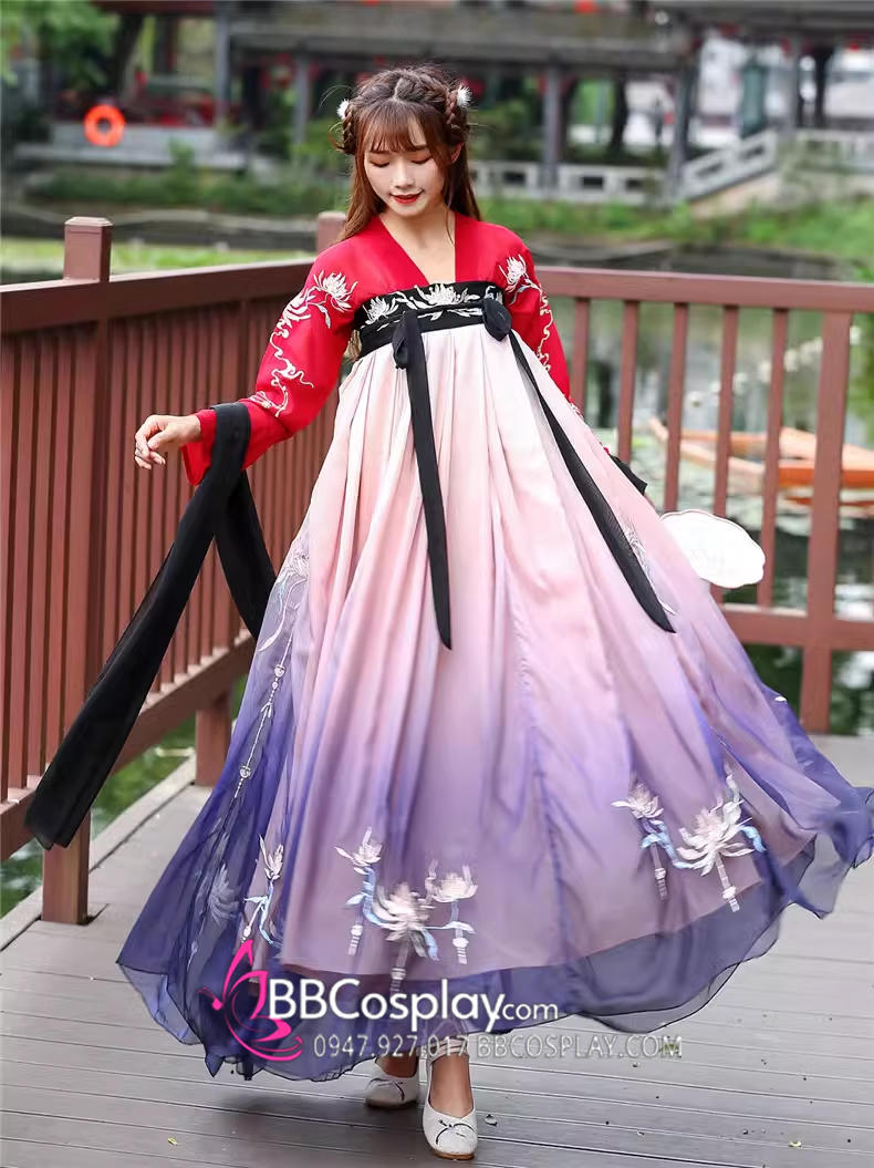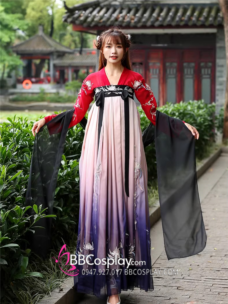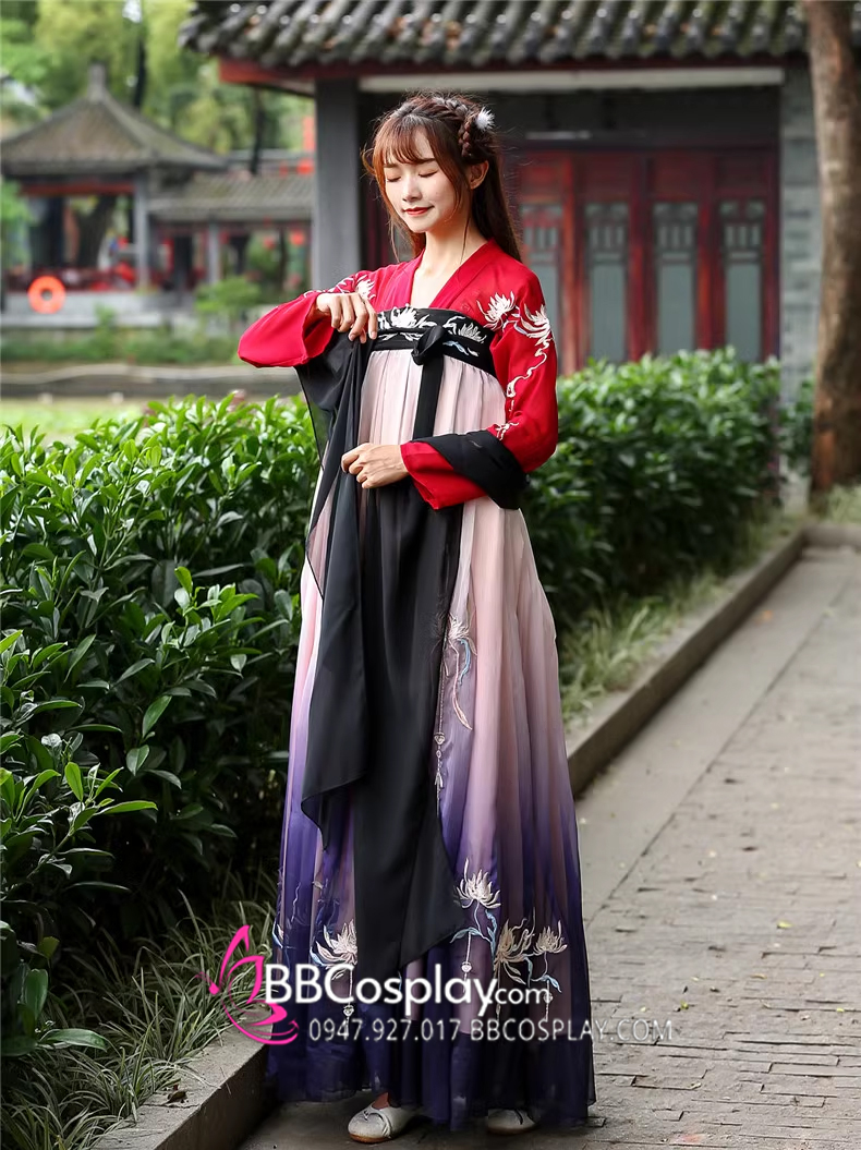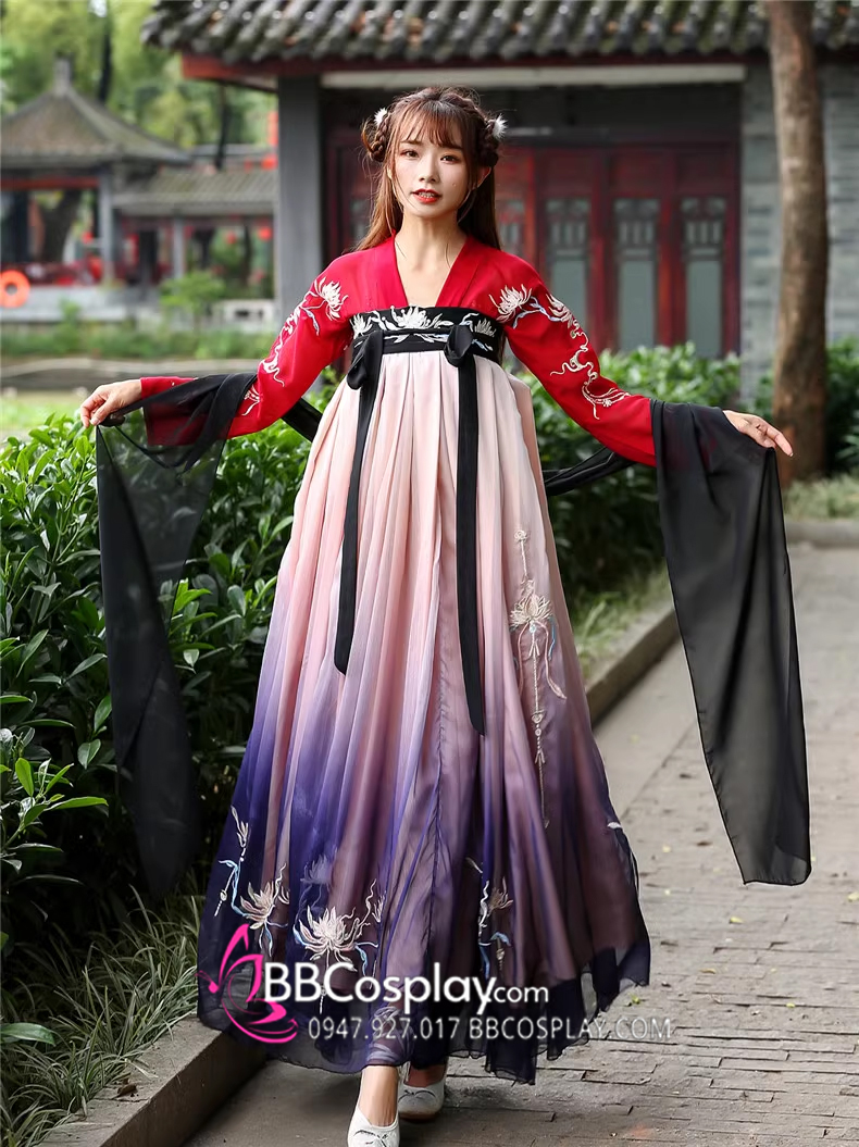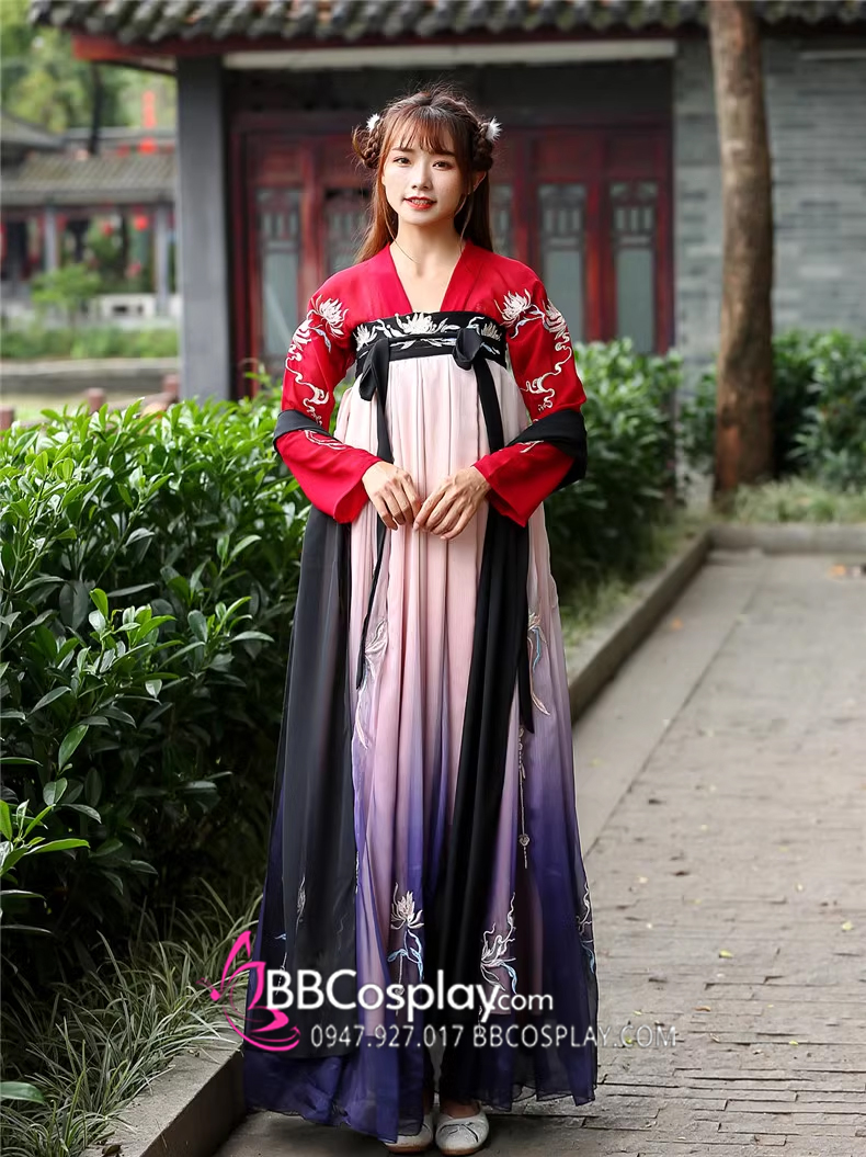 Hán Phục Tây Tửu Li Mị Chân Váy Chuyển Màu Thêu Hoa