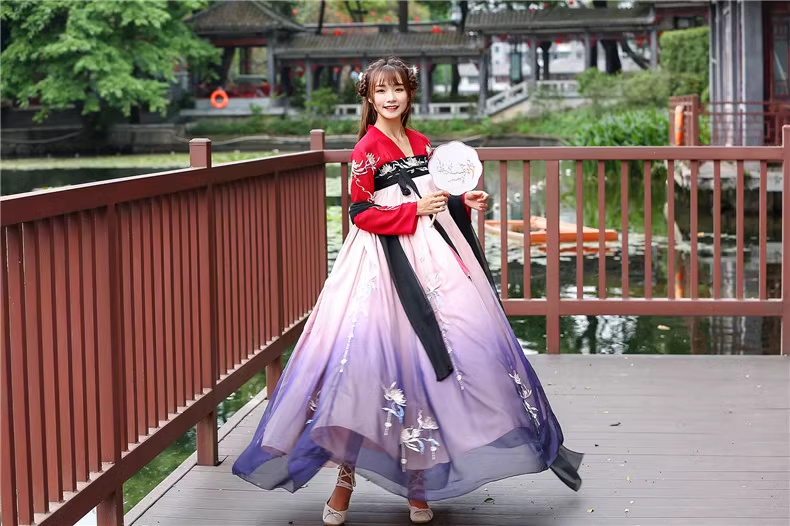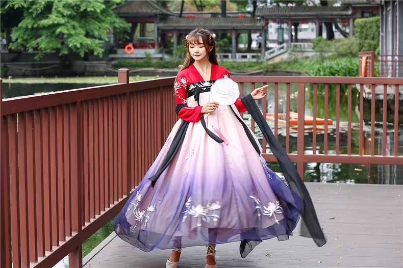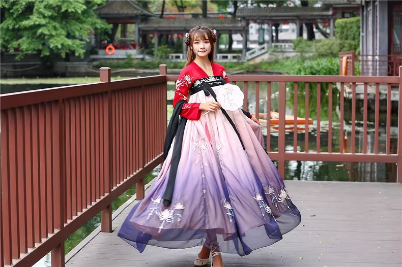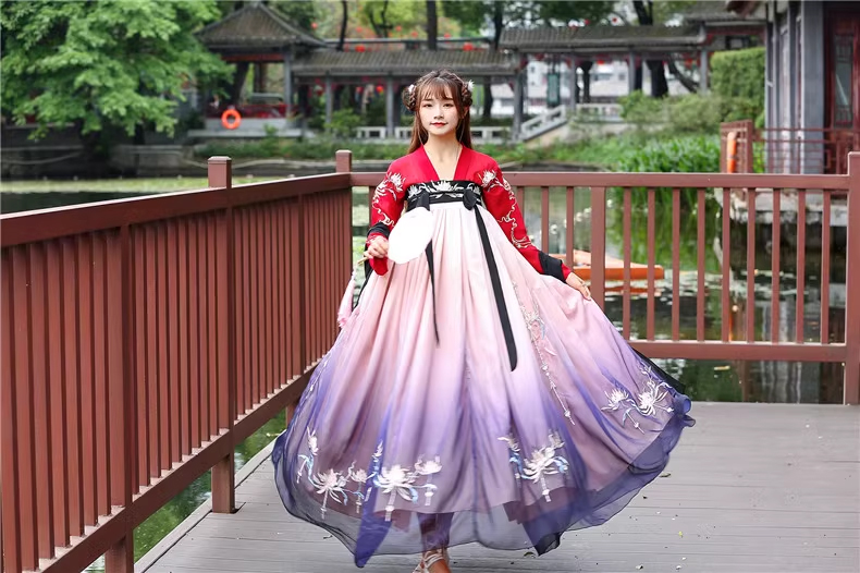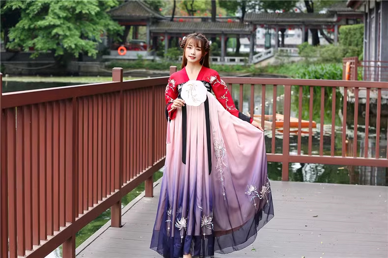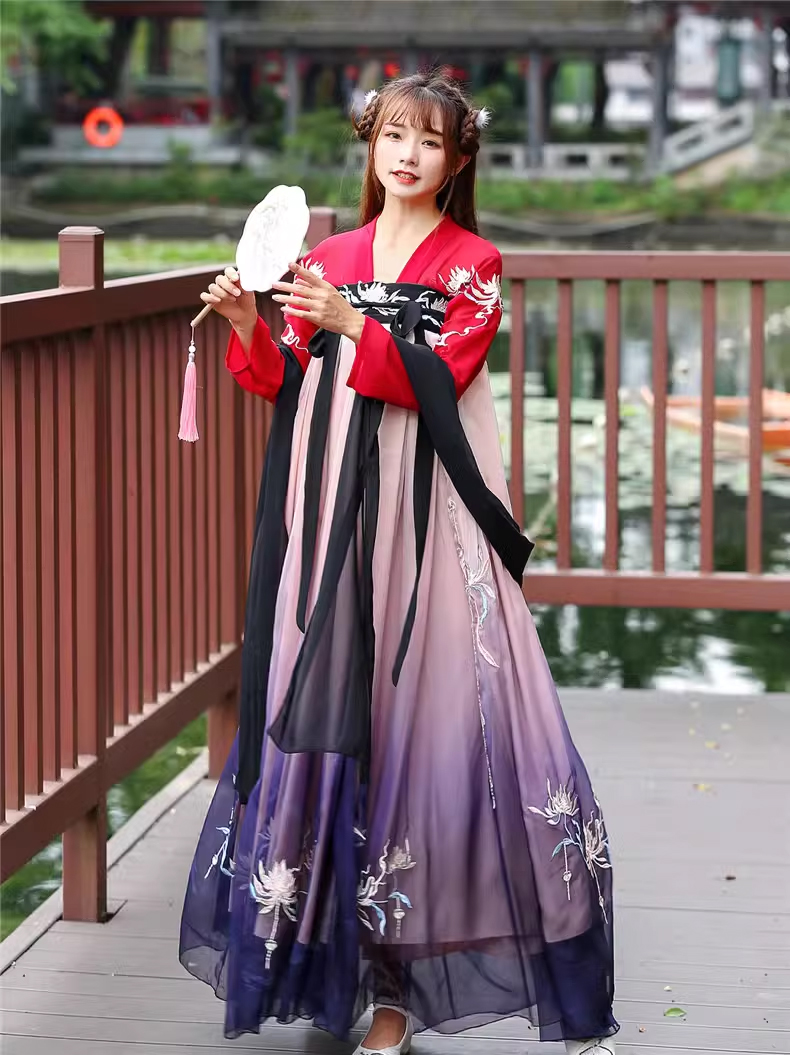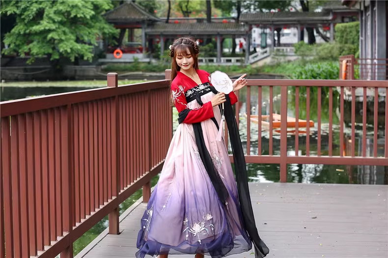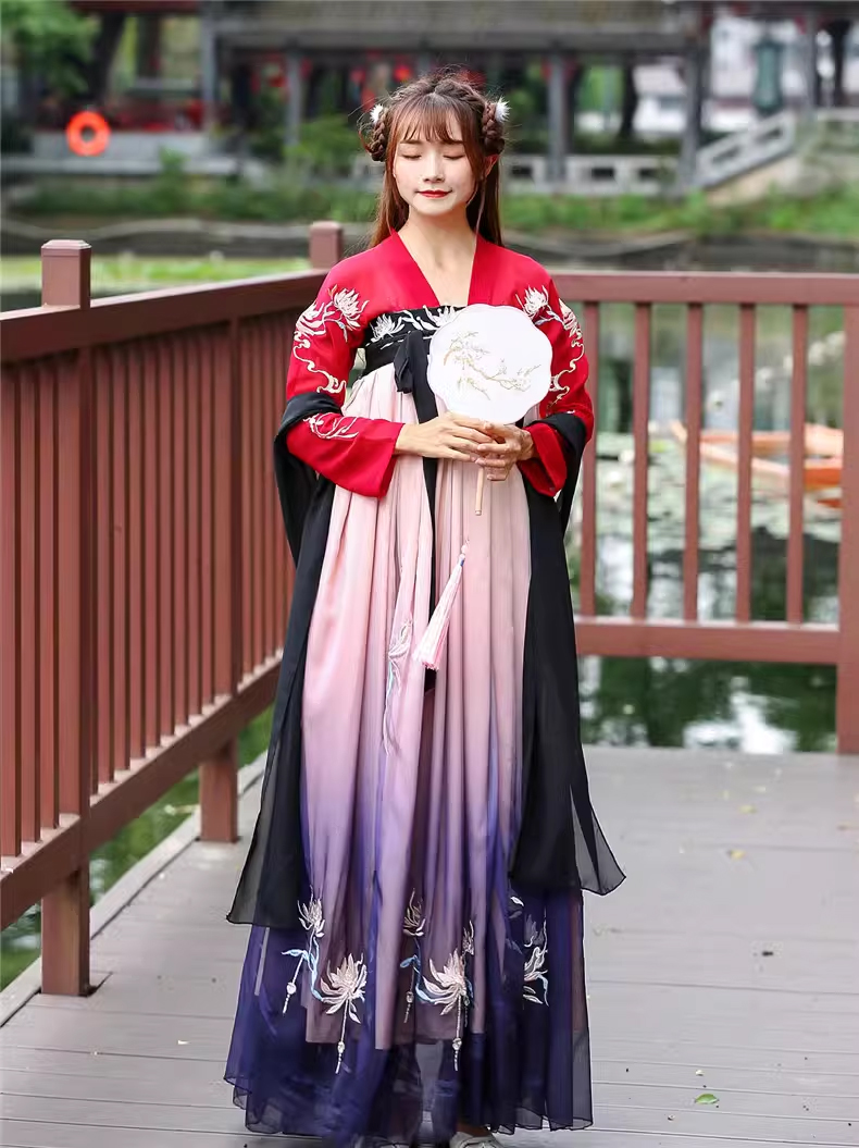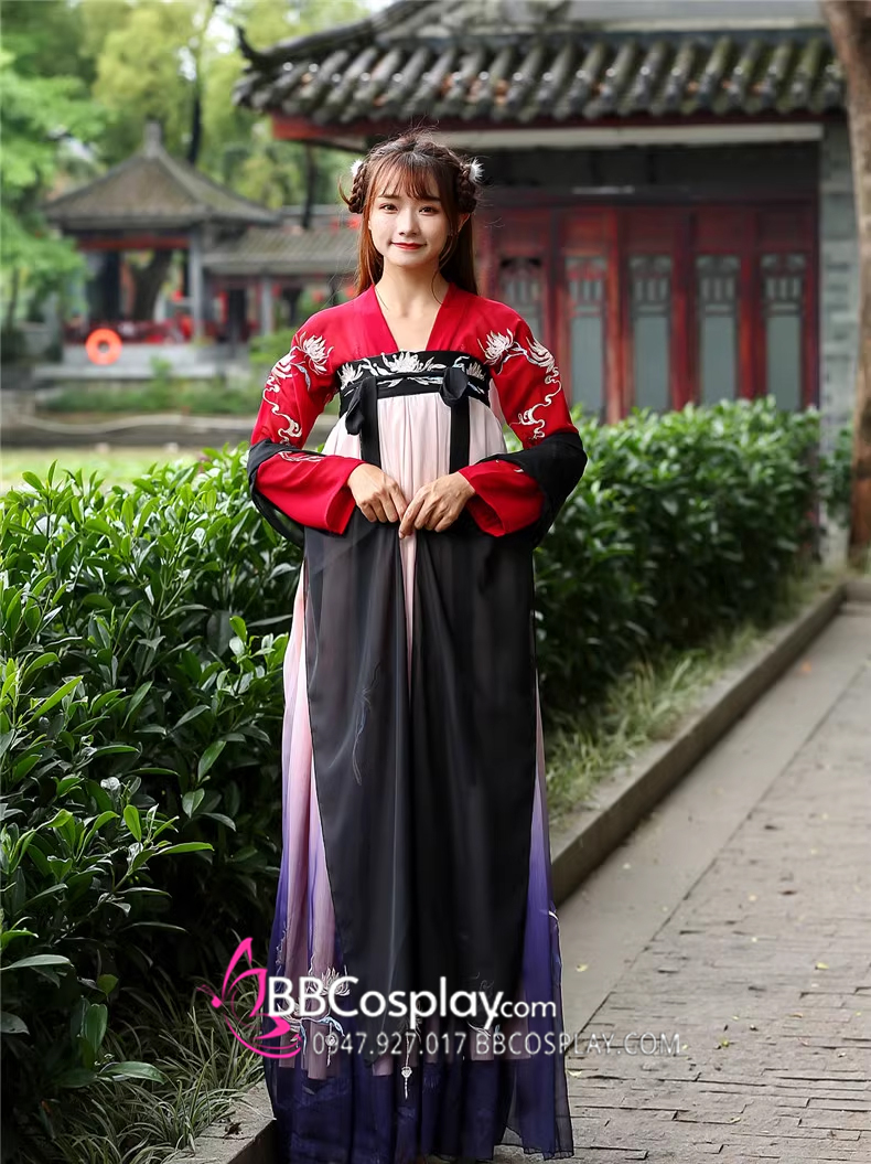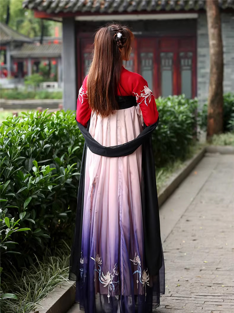 Hán Phục Tây Tửu Li Mị Chân Váy Chuyển Màu Thêu Hoa