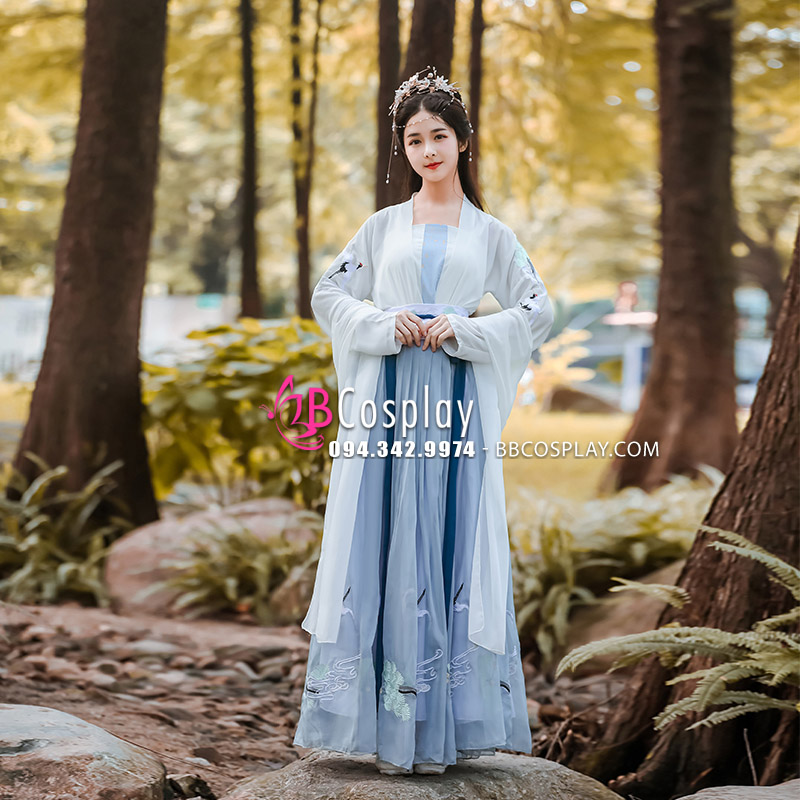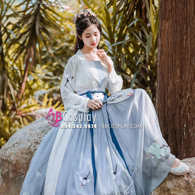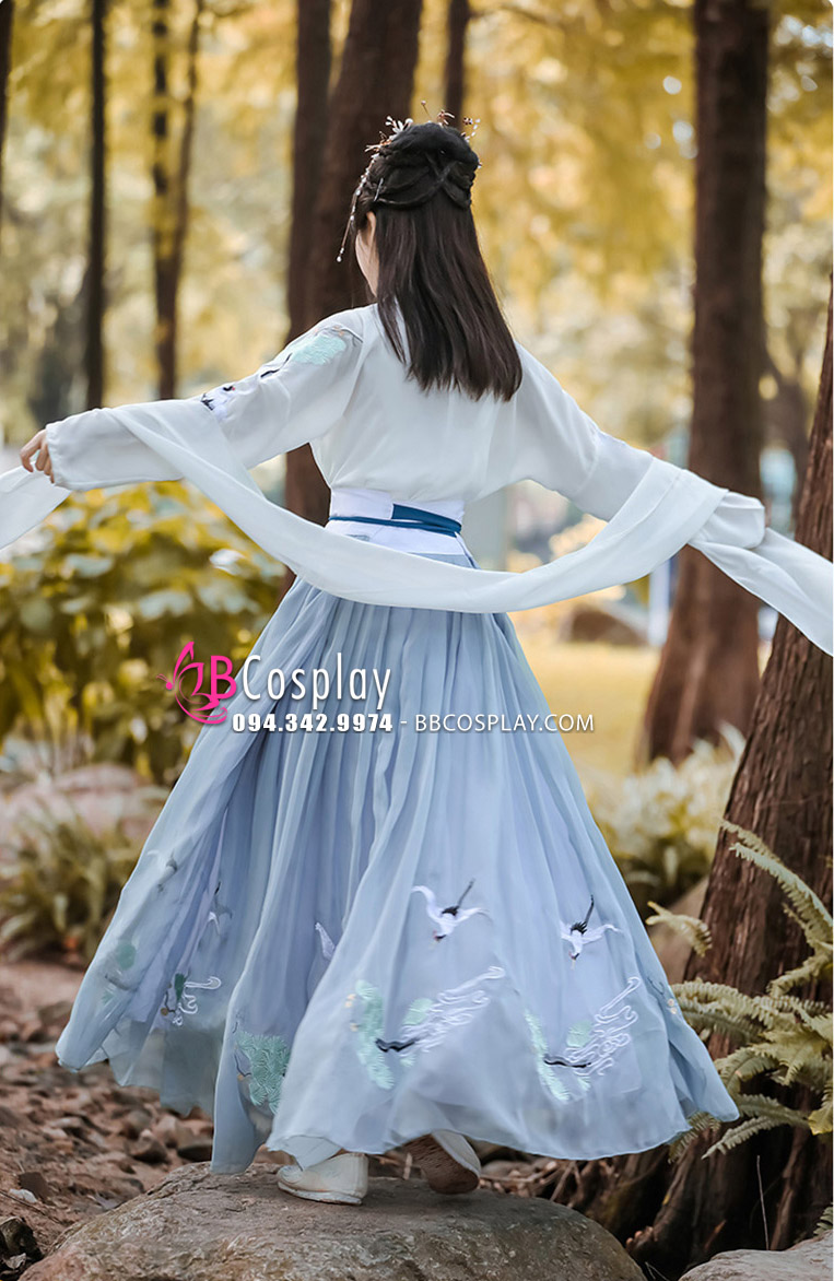 Hán Phục Bạch Hạc Du Tiên Chiết Eo Váy 6M Thêu