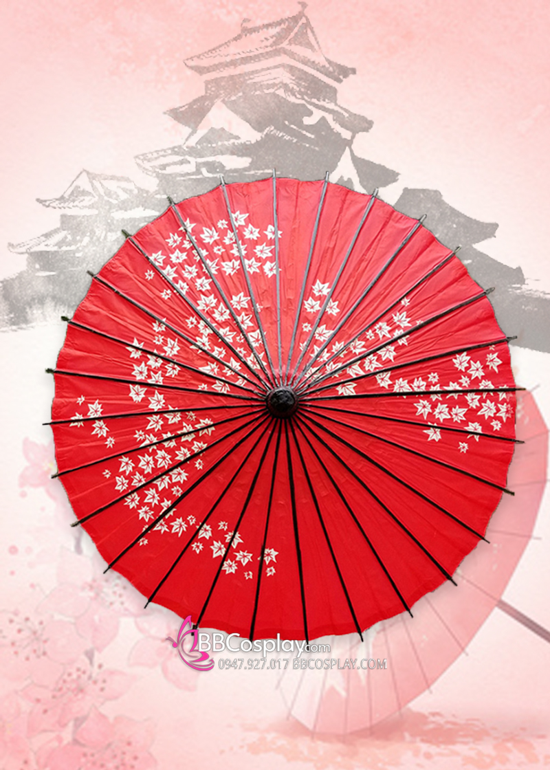 Ô Dù Nghệ Thuật Wagasa Nhật Bản Đỏ Lá Phong 1 Xoáy