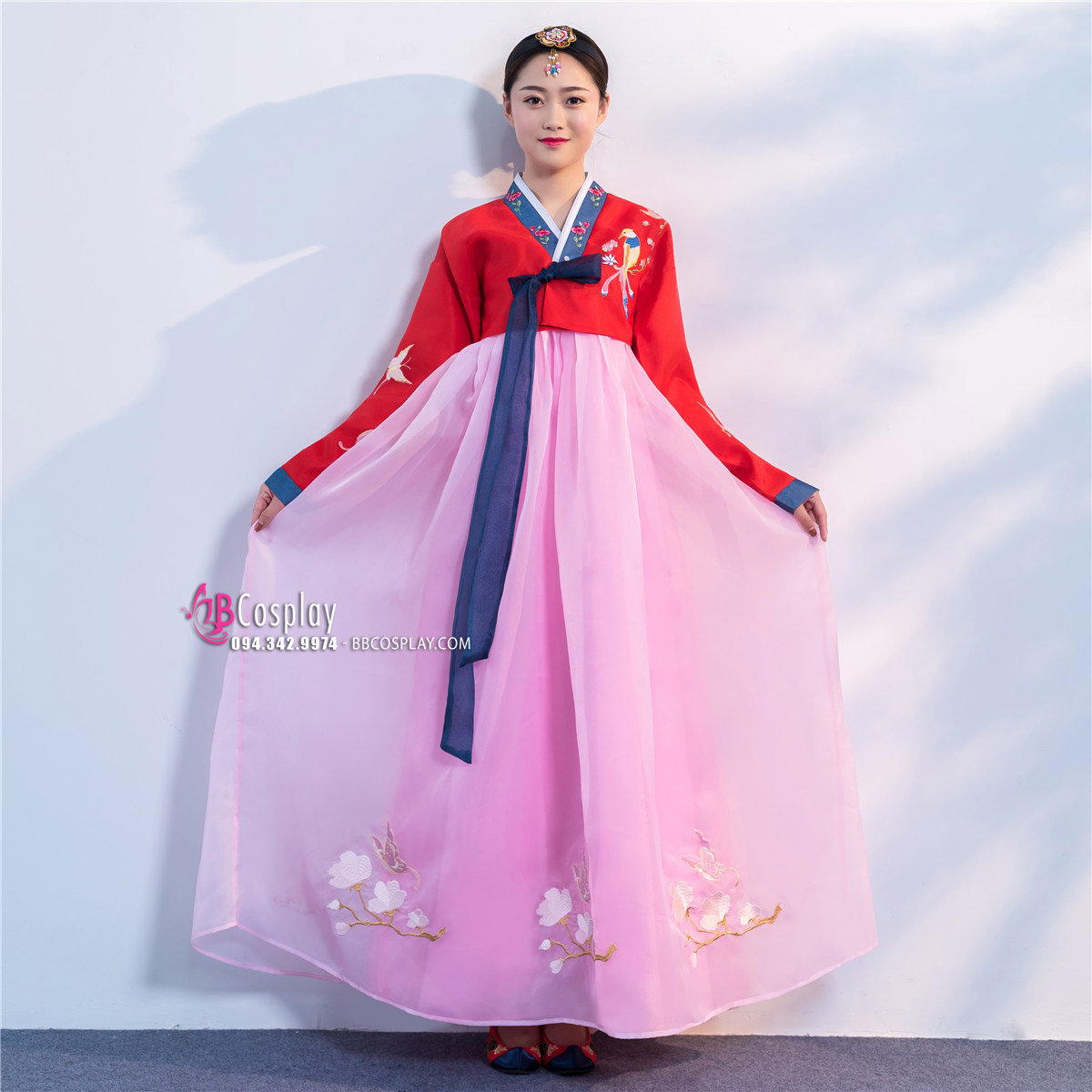BBCosplay tự hào là một địa chỉ uy tín cung cấp dịch vụ thuê mua Hanbok Hàn Quốc chất lượng. Hanbok Hàn Quốc áo đỏ váy hồng với dáng váy xòe và thân trên hài hòa giúp che được nhiều khuyết điểm trên cơ thể. Hanbok có thể được sử dụng để chụp ảnh, lễ hội hóa trang,... khiến bạn trở thành người nổi bật nhất trong bất cứ dịp nào!