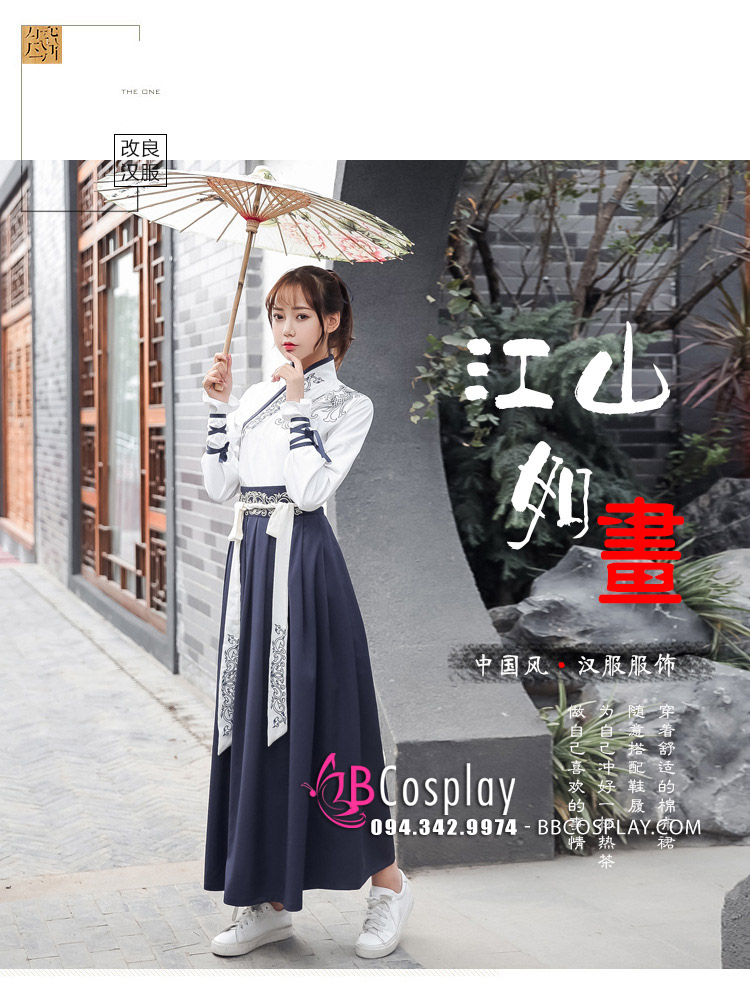 Hán phục là quốc phục truyền thống của người Trung Quốc và là trang phục có lịch sử lâu đời nhất thế giới. Hiện nay, sự ảnh hưởng của những bộ phim cổ trang đã khiến hán phục phổ biến trở lại. Hán phục không những được sử dụng trong những bữa tiệc, đi dạo phố, biểu diễn mà còn được dùng để làm đồ cưới với những cái tên như Song Hạc Ý Thiên, Tà Mị Huyền Xích, Nam Bạch Huyền Hạt, Song Dạ Minh Loan,... Bên cạnh những bộ đồ đó BBCosplay còn có Cặp hán phục đôi nam nữ Áo Trắng Váy Xanh rất được ưu thích để check in hay chụp ảnh cưới, ảnh đôi,...