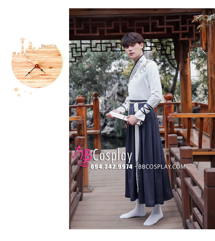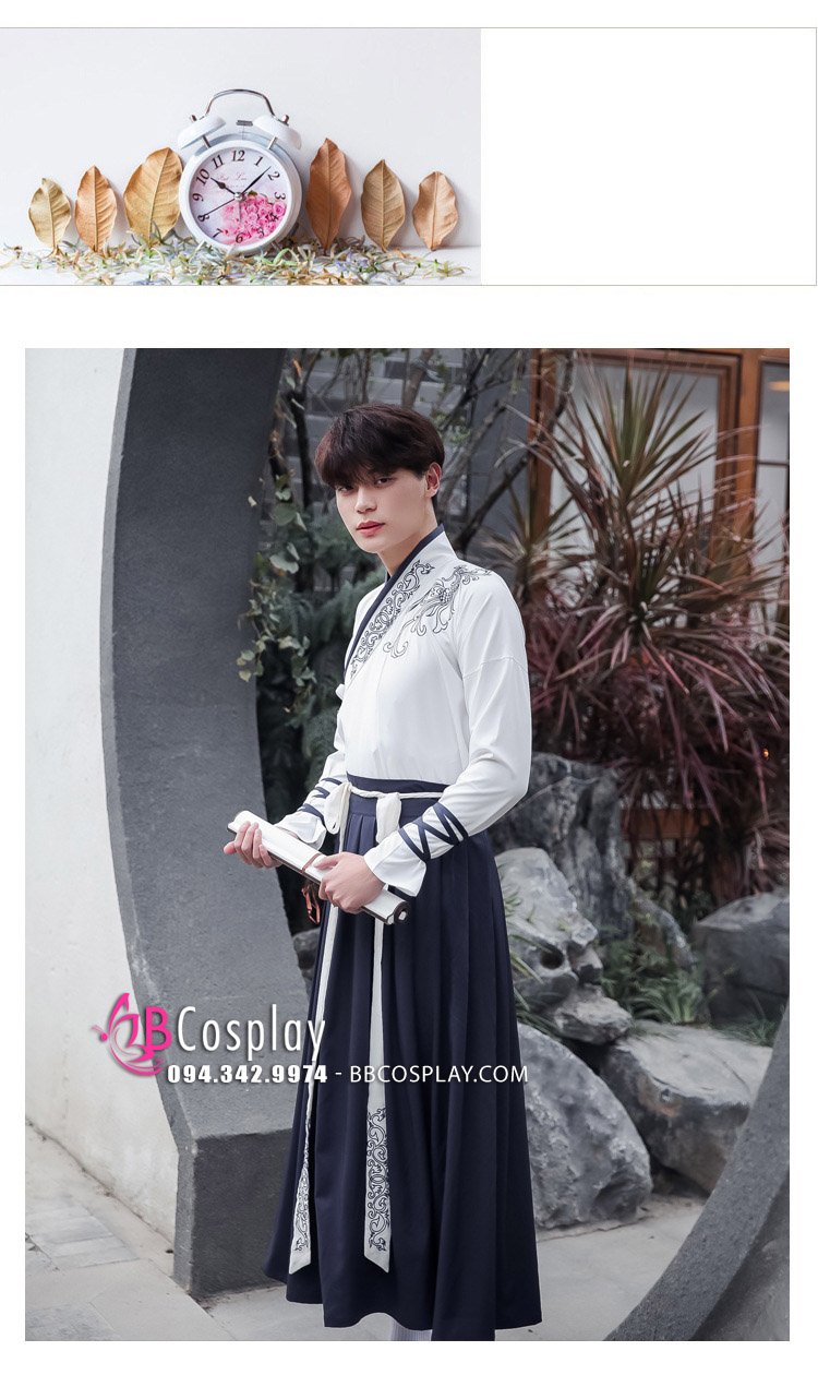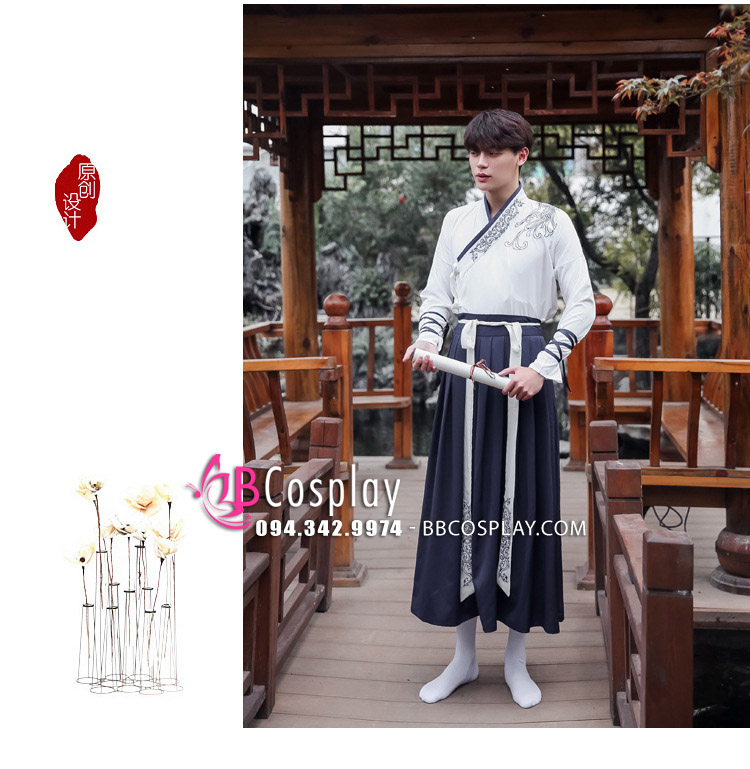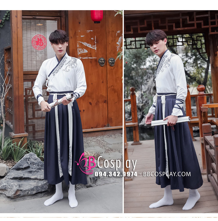 Cặp hán phục đôi nam nữ Áo Trắng Váy Xanh được may bằng vải kaki rũ cao cấp, thêu họa tiết trang nhã, tay áo nhỏ gọn dễ hoạt động, kiểu dáng trẻ trung hiện đại và đảm bảo 100% như hình. Hán phục cặp đôi có nhiều phụ kiện đi kèm như giày, quạt xếp, dù,... tạo điểm nhấn chắc chắn sẽ khiến các bạn nổi bật trong mọi bữa tiệc hay lễ hội cosplay.