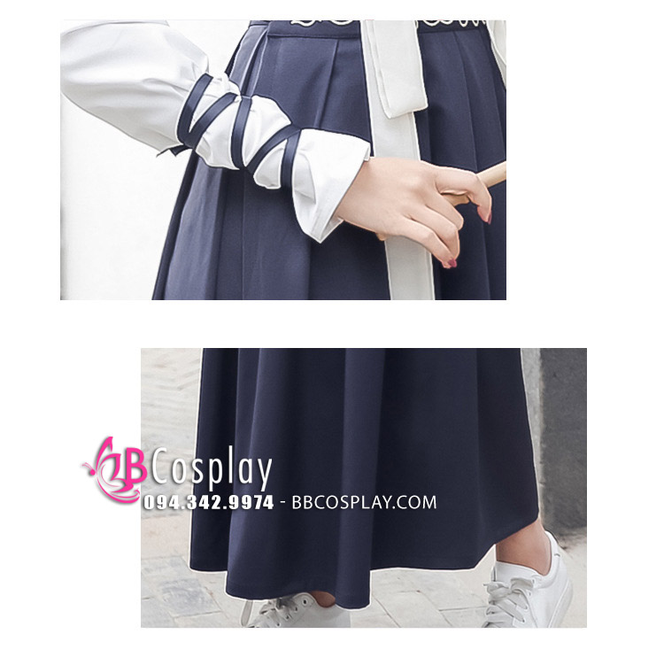 Đồ Nàng Hầu Maid Xanh Dương Tạp Dề Trắng Kèm Nhiều Nơ