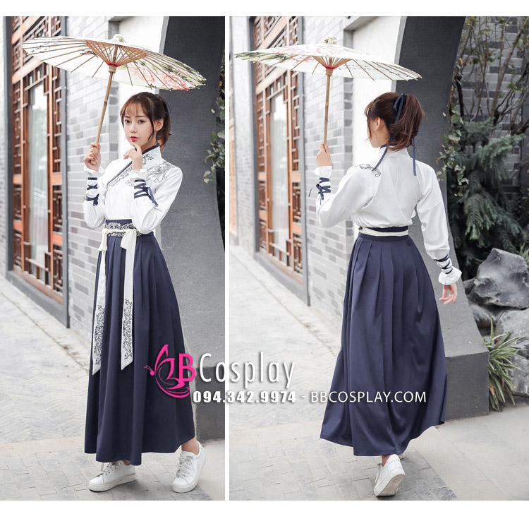 Hán Phục Áo Trắng Váy Xanh