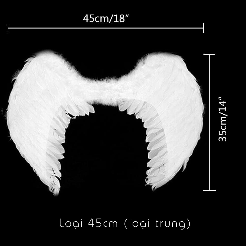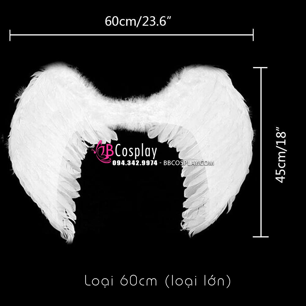 Nhằm phục vụ nhiều nhu cầu của khách hàng, Cánh Thiên Thần Đen Lông Ngỗng 60cm có 2 màu sắc đen, trắng và 2 size: đại (60x45cm, sải cánh dài 80cm) và trung (45x35cm, sải cánh dài 60cm). Sản phẩm của chúng tôi có thể dùng trong chụp ảnh, hóa trang, biểu diễn nghệ thuật,...