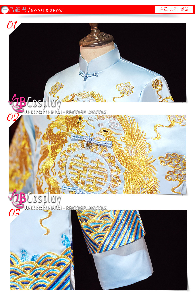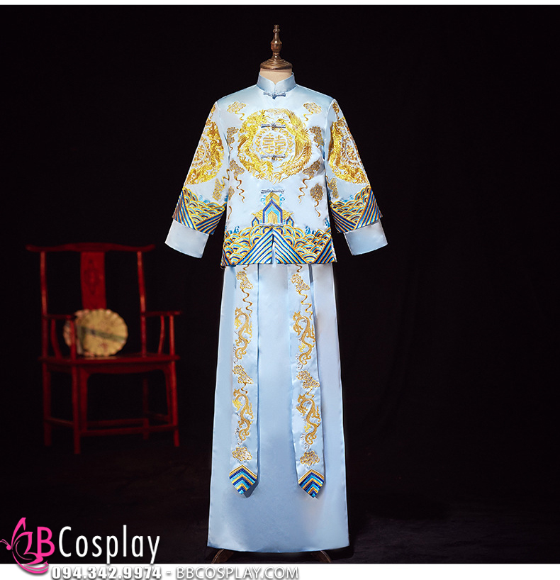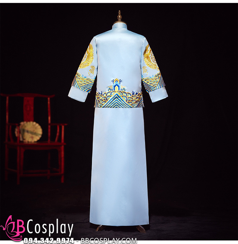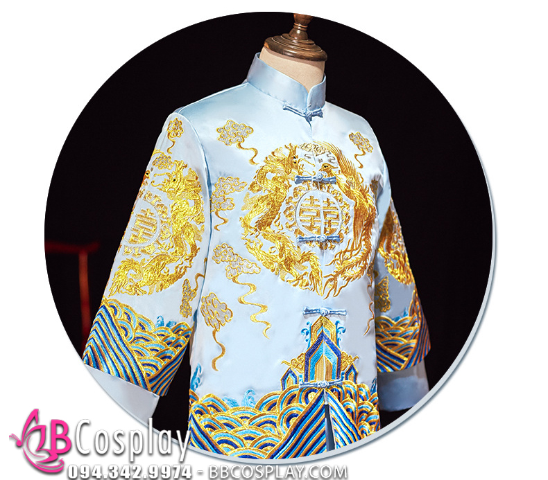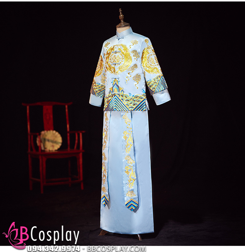 Hỉ Phục Tân Lang Tone Xanh Dương Cặp Long Phục Mới 2024