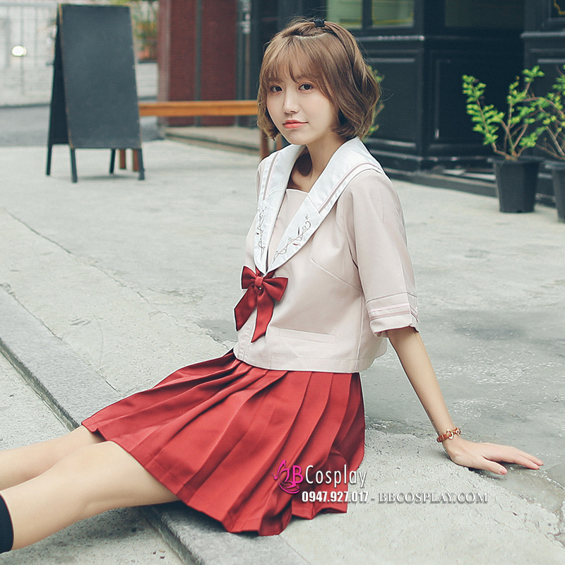 Nữ Sinh Xinh Xắn Áo Kem Váy Đỏ
