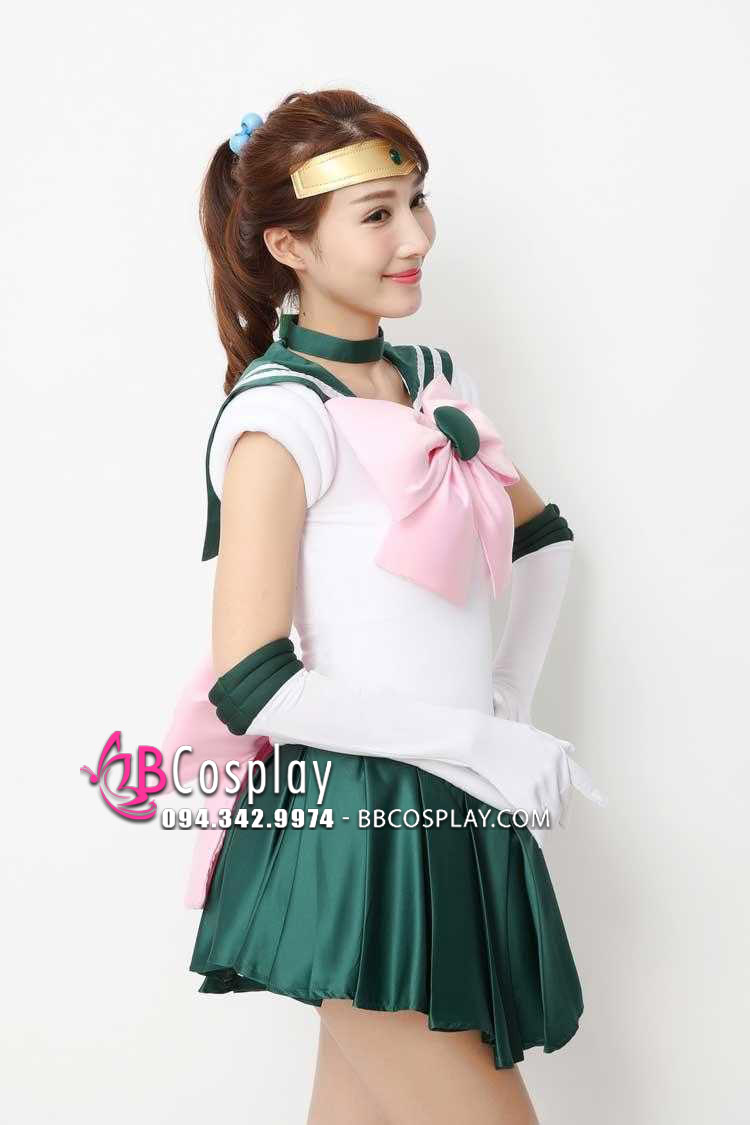 Sailor Jupiter - Thủy Thủ Sao Mộc là thành viên thứ 3 với sức mạnh sấm sét và thực vật. Do đó, Đồ Cosplay Thủy Thủ Sao Mộc có tông chủ đạo là trắng, xanh và có phần nơ hồng rất nổi bật ở phần ngực và lưng. Trang phục được mô phỏng hoàn toàn dựa trên phiên bản anime/manga với chất liệu thun, phi bóng. Ngoài ra, BBCosplay còn hỗ trợ nhiều set phụ kiện cho thuê mua chắc chắn sẽ làm bạn hài lòng.