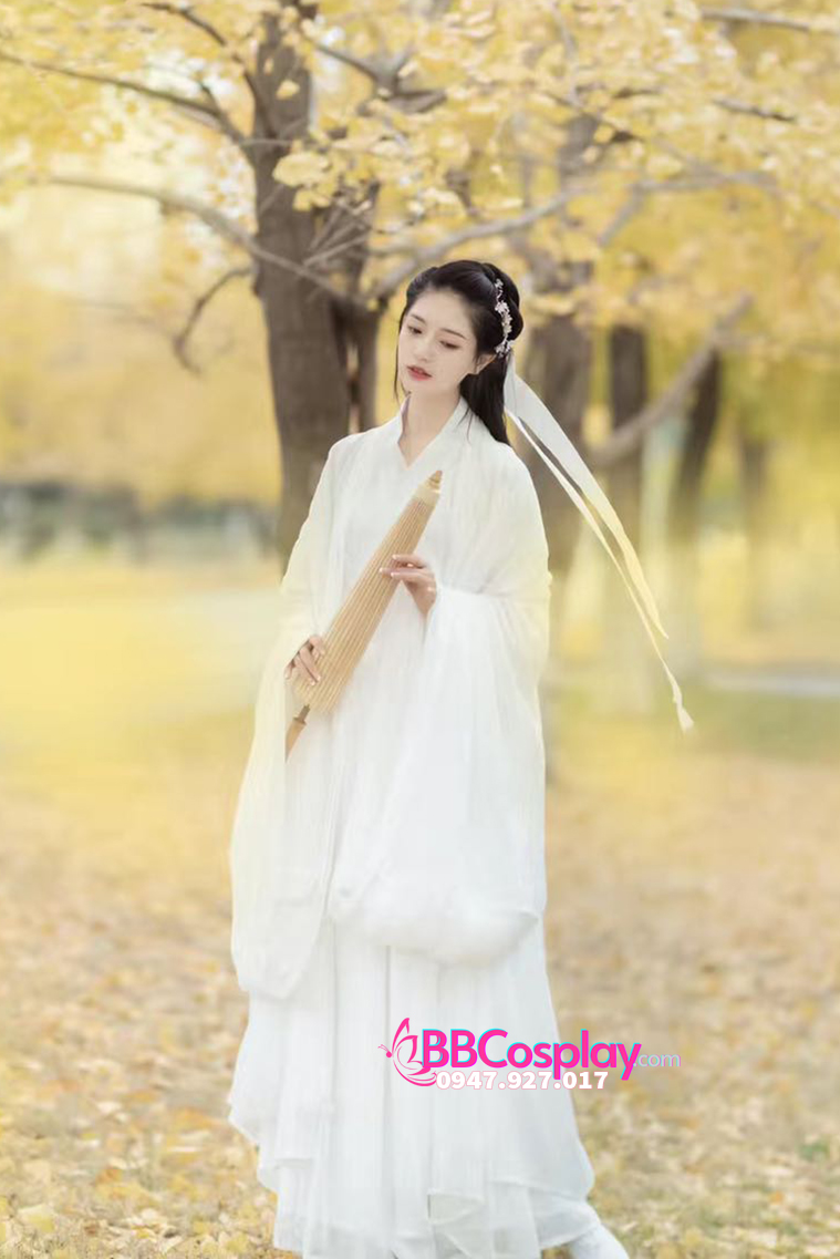 BBcosplay giới thiệu bộ cổ trang sắc trắng thanh khiết, voan mềm nhẹ, thướt tha. Nếu bạn mê đắm sắc trắng dịu dàng thì đây là mẫu bộ đồ cổ trang trắng ko thể bỏ qua. Hãy để vạt áo của bạn tung bay trong gió với trang phục của BBcosplay.