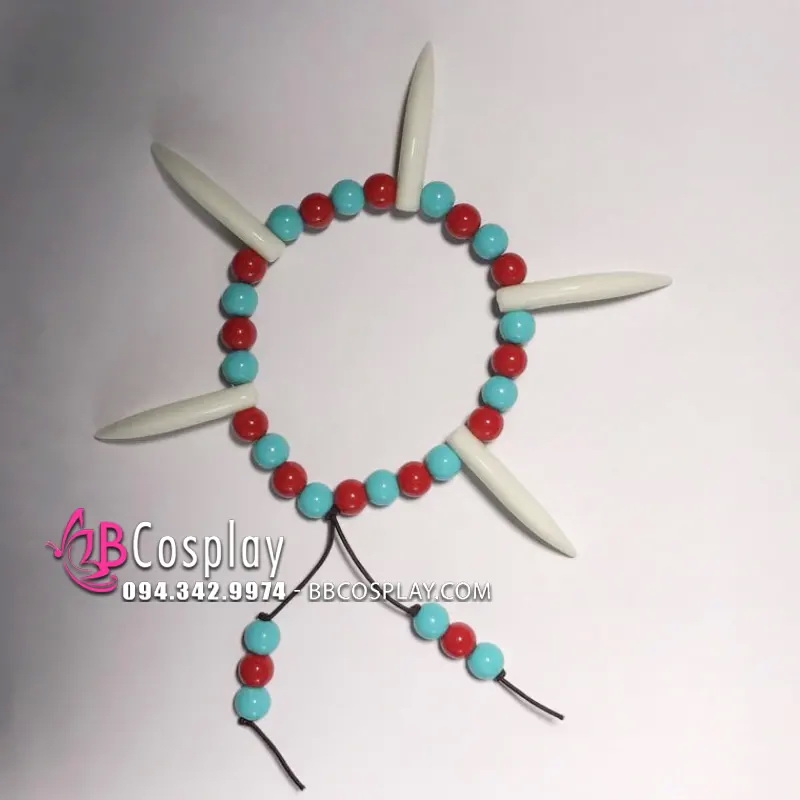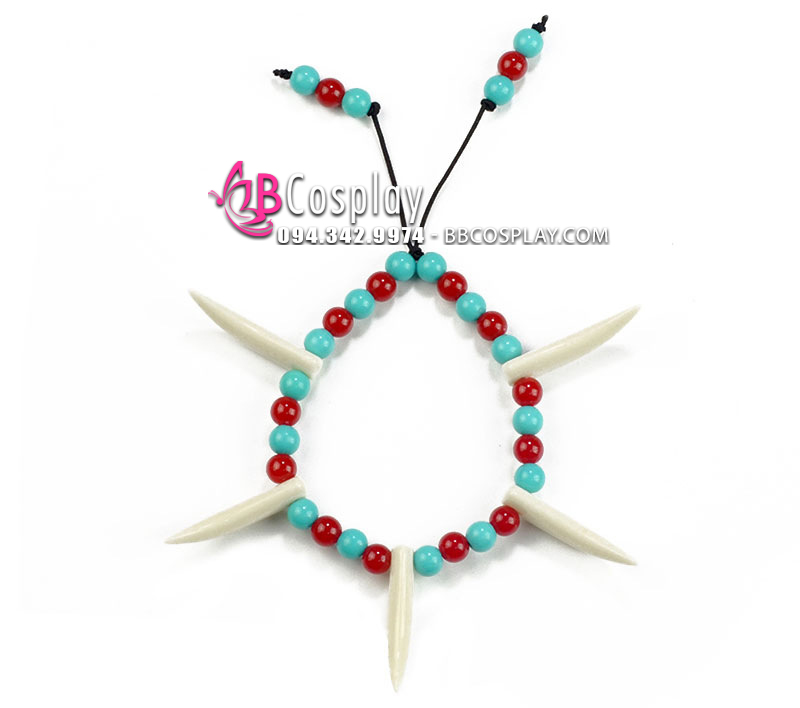 Thành phần: 1 vòng tay có 5 răng nanh, và 30 hạt đá (bằng nhựa) như ảnh