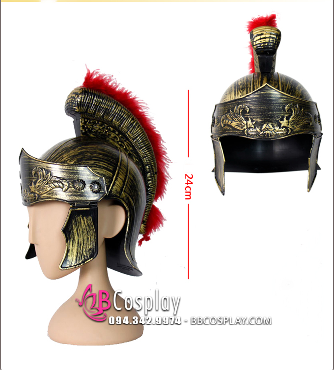 Mũ Chiến Binh La Mã Vàng Đồng Có Lông
