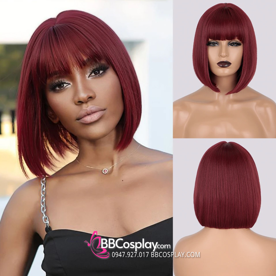 Tóc Ngắn Đỏ Rượu Mái Ngang