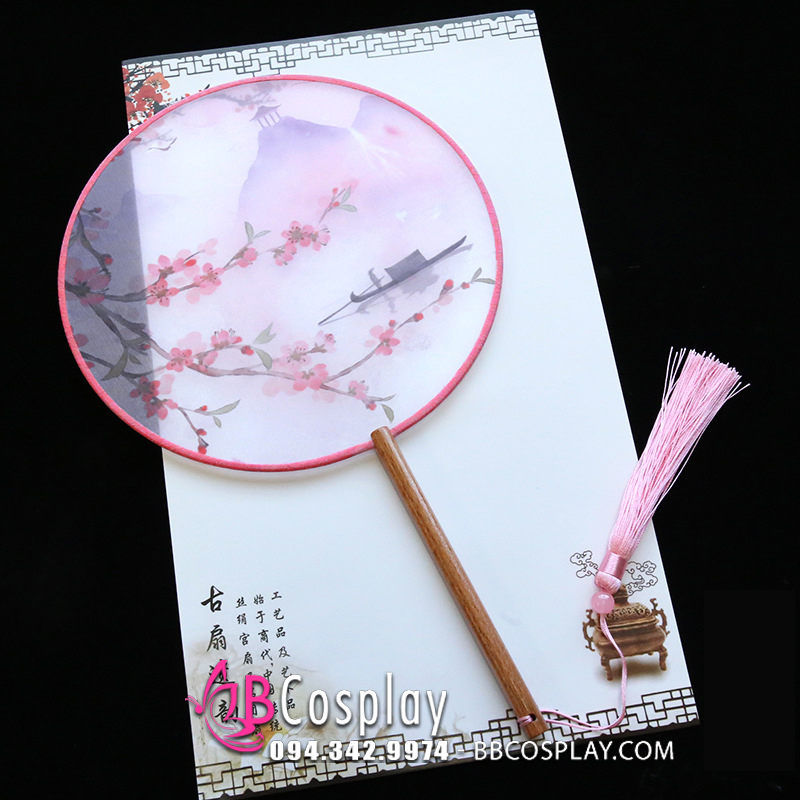 Quạt Chụp Ảnh Hán Phục Cán Ngắn Hoa Đào